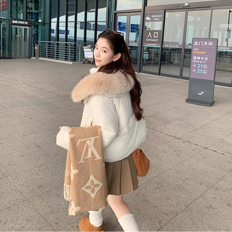 ラビットファーカラー ショートダウンジャケット アイボリー JK00106
