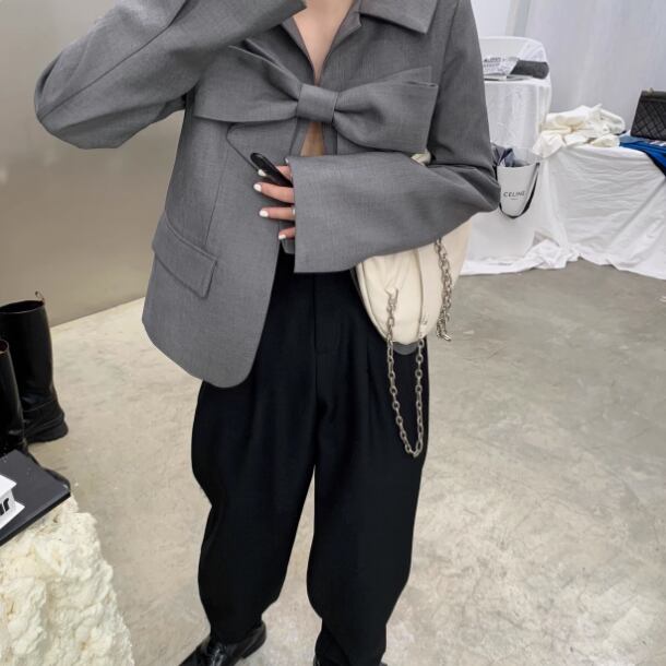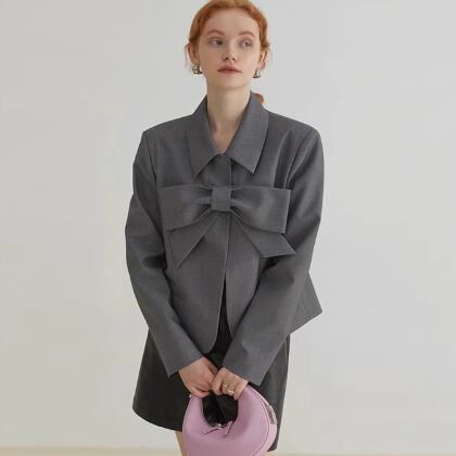 ビッグリボン ウールショートジャケット チャコールグレー JK00112