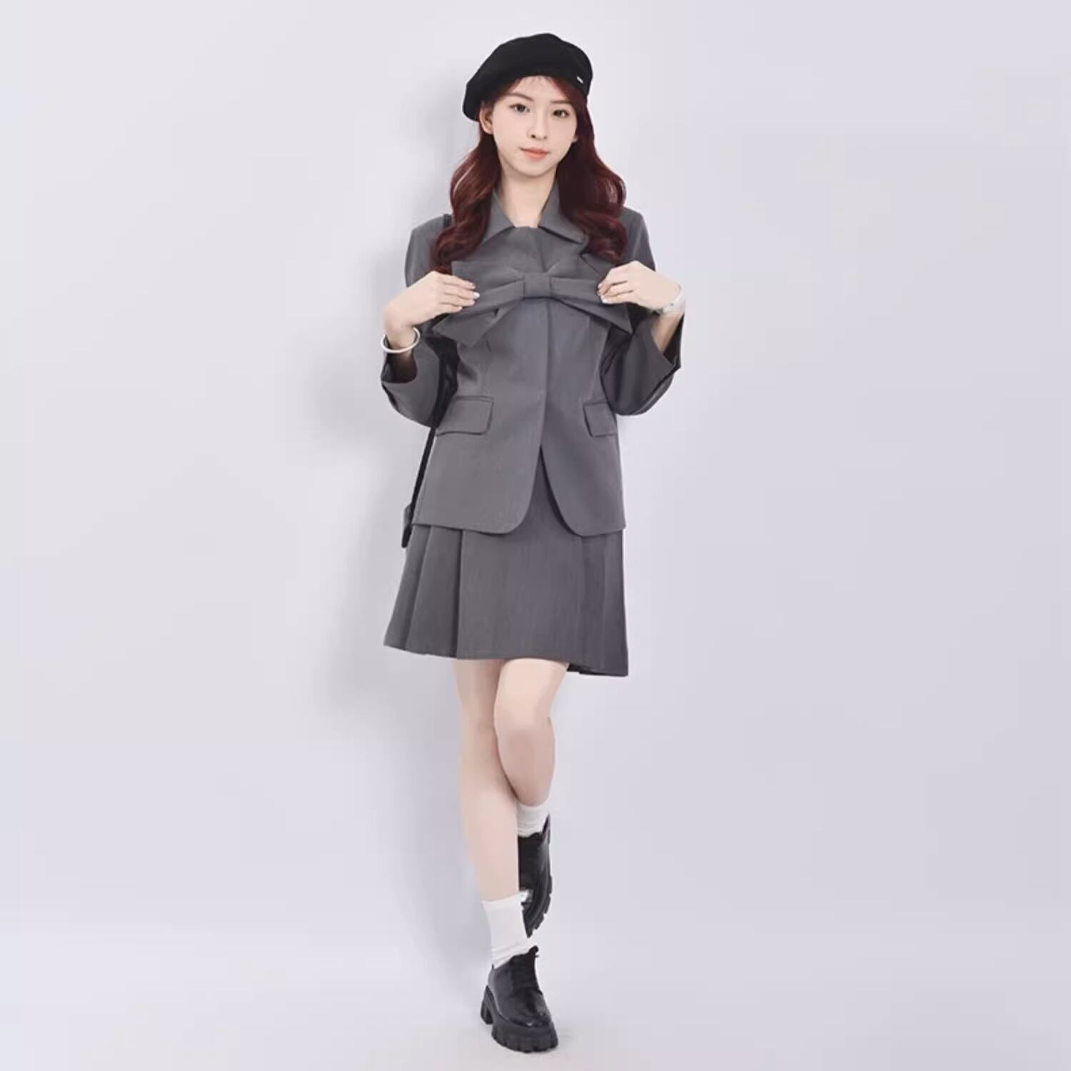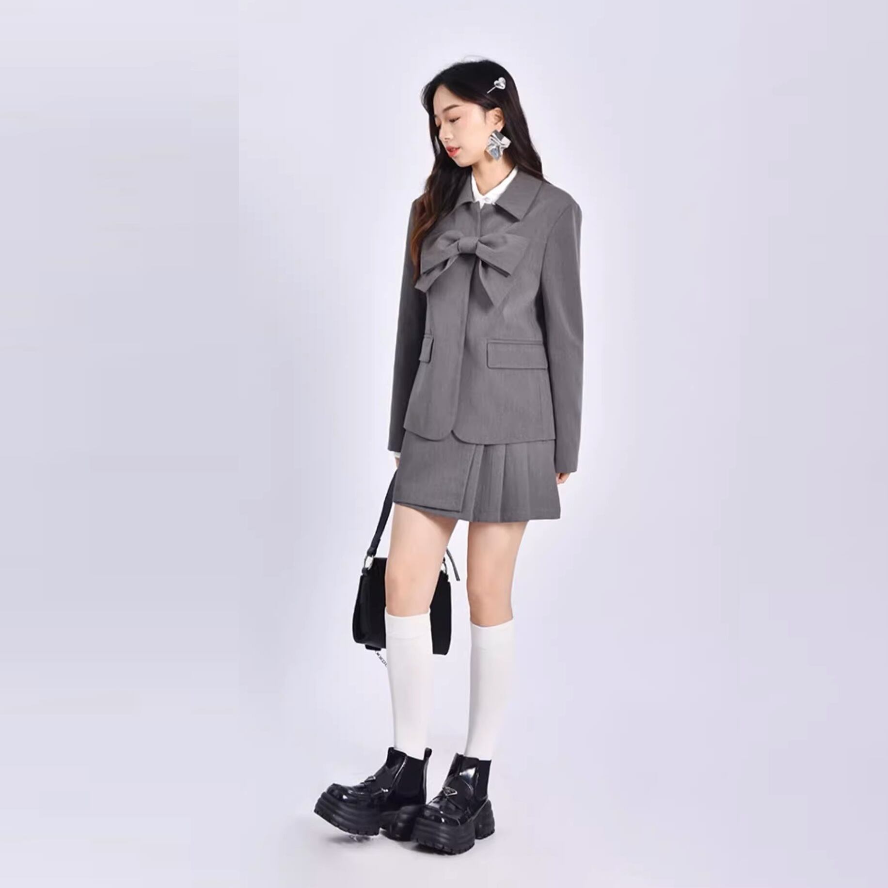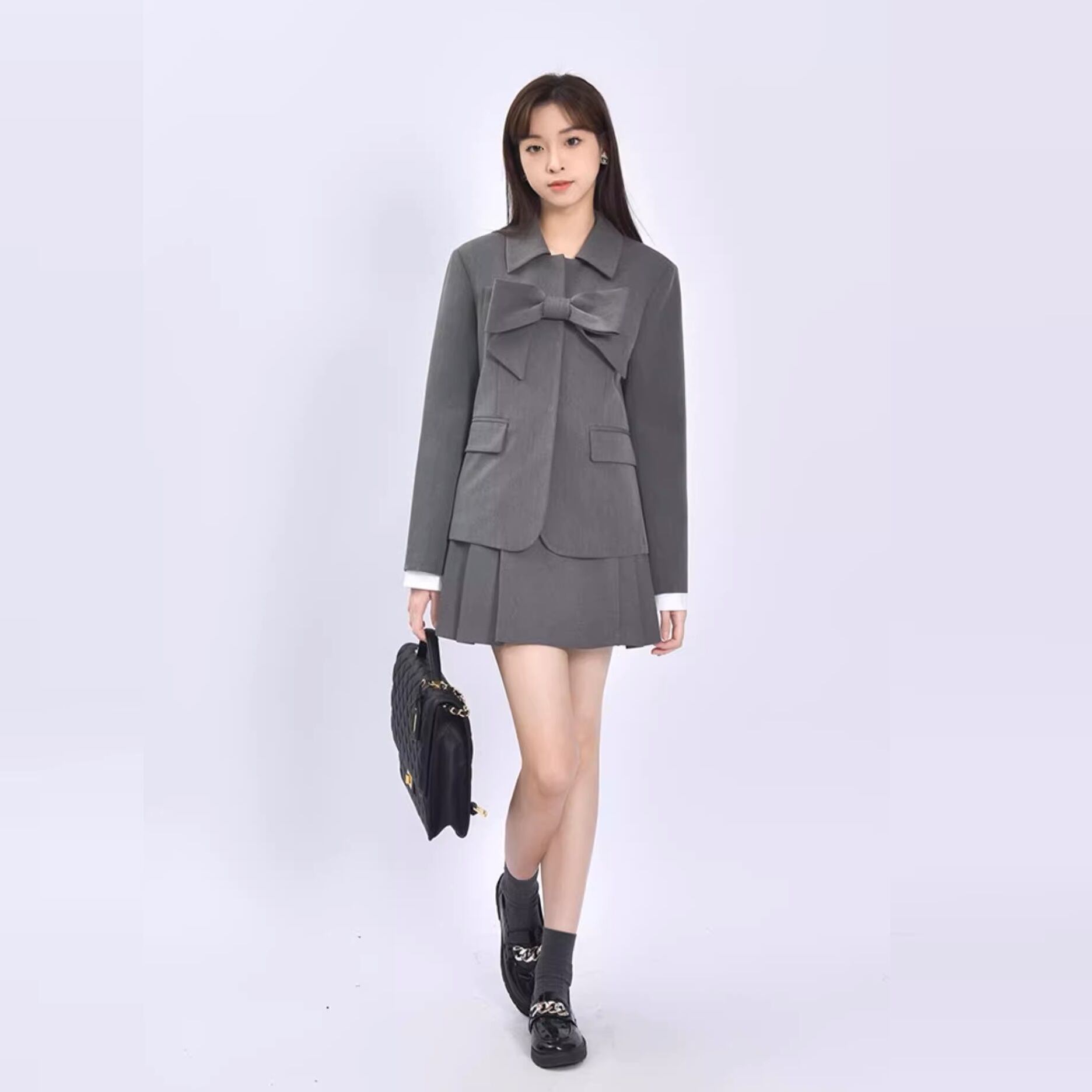 ※ボックスミニスカートとのセットアップ「ビッグリボン ウールショートジャケット+ボックスミニスカート セットアップ チャコールグレー SU00068」もございます。