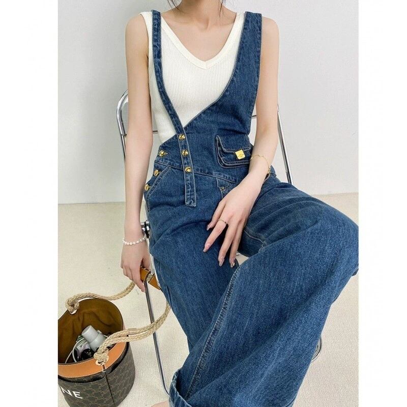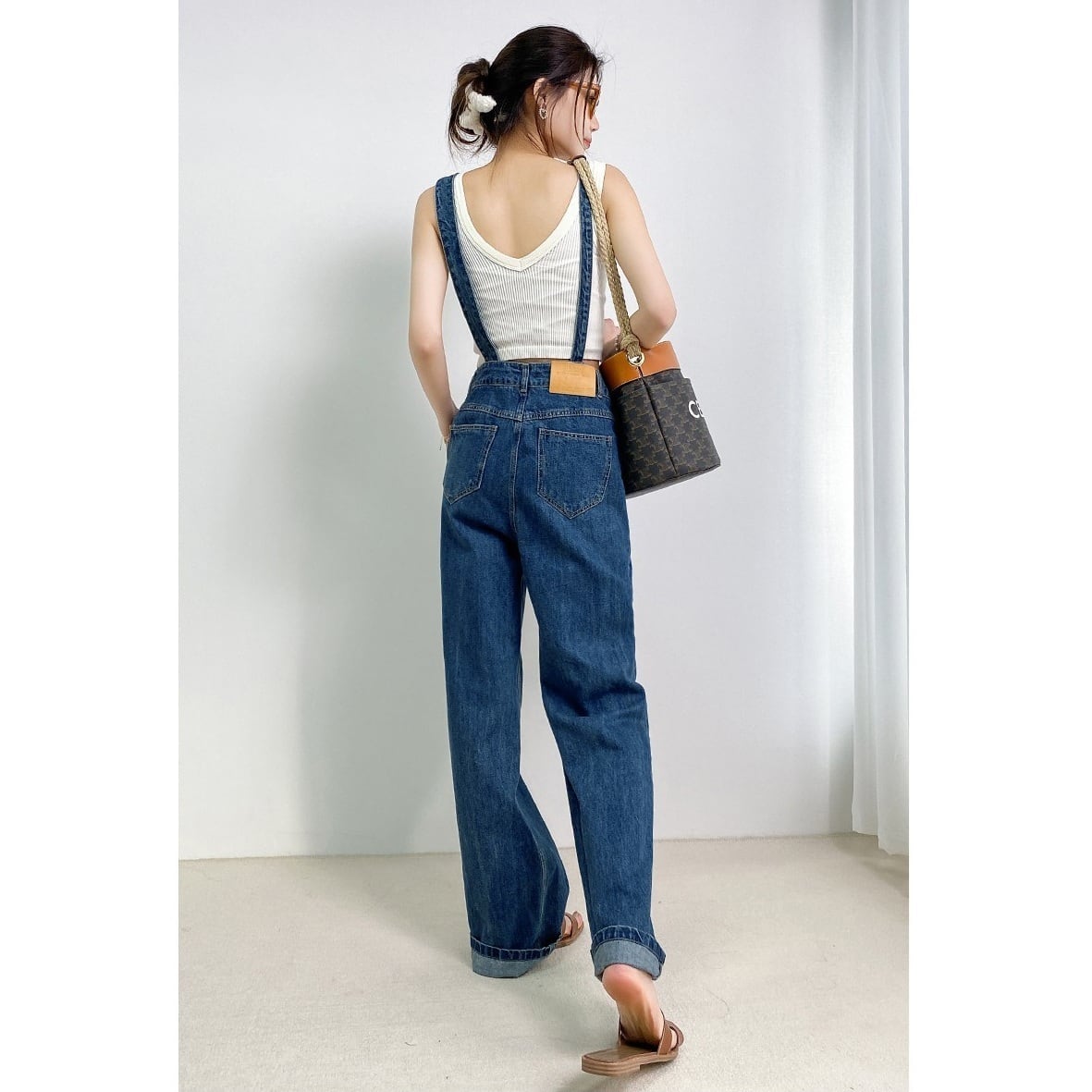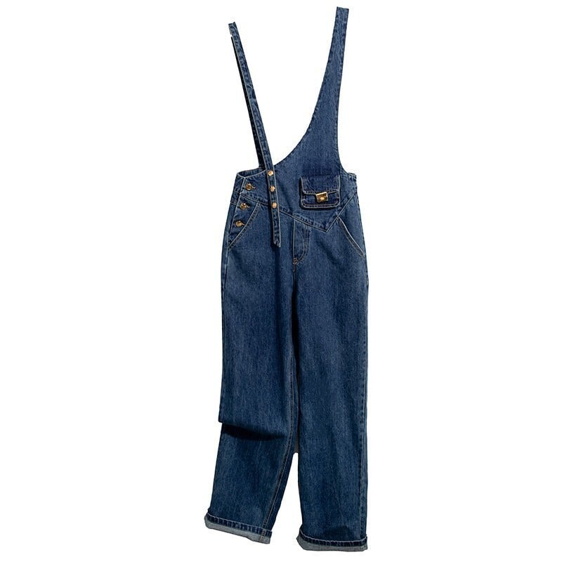 アシンメトリーなストラップとゴールドボタンがポイントのデニムサロペットです。しっかりとしたステッチやポケットの仕様、色落ちなど、本格的なデニムの製法を使用しており、ハイセンスなスタイルに仕上がります。ゆったりめのストレートレッグのシルエットでスタイルアップが叶います。夏はTシャツとサンダル、冬はツイードジャケットとブーツなど、トップスやシューズ、合わせるアイテムによって表情がかわり、カジュアル、マニッシュ、エレガント、幅広いスタイリングが楽しめます。