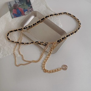 ブレイドレザーとコインチャーム付きのマルチチェーンのコンビネーションがエレガントなハーネス・デザインベルトです。斜めがけをしてハーネスとして、ウエストに巻けばベルトとして、コーデに合わせて幅広いスタイリングが楽しめます。プラスするだけでいつものコーデがぐっと華やかになります。ジャケット、ワンピース、ニット、ブラウス、幅広いアイテムに良く似合います。