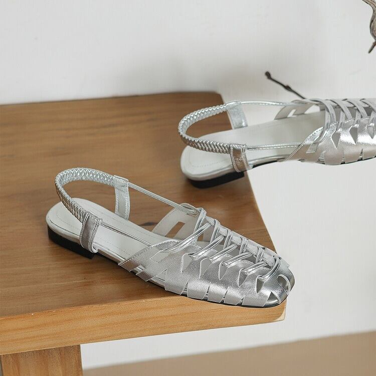 レザーブレイド スリングバック フラットサンダル シルバー SH00364