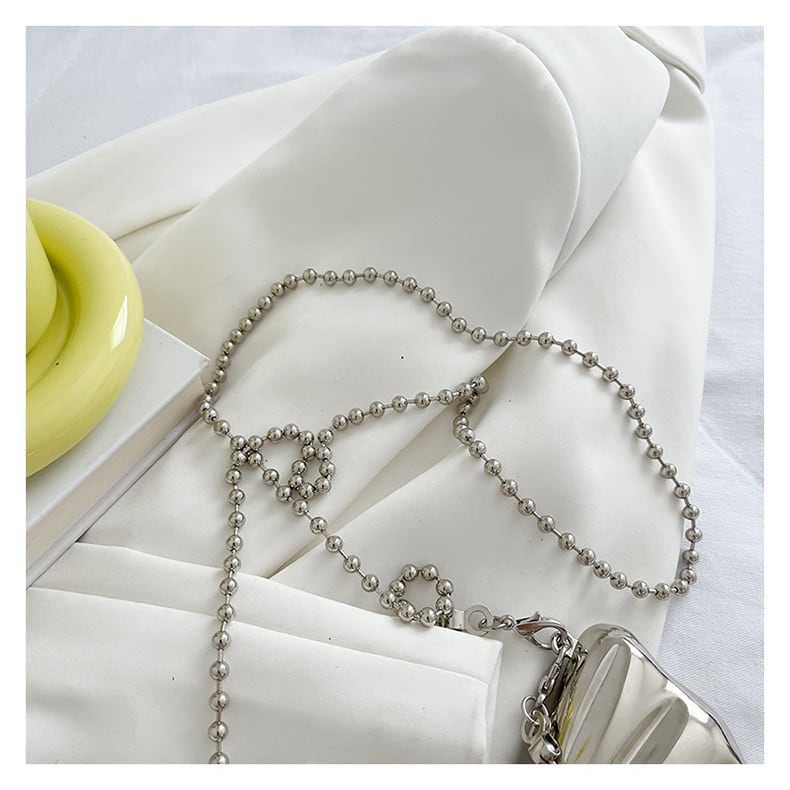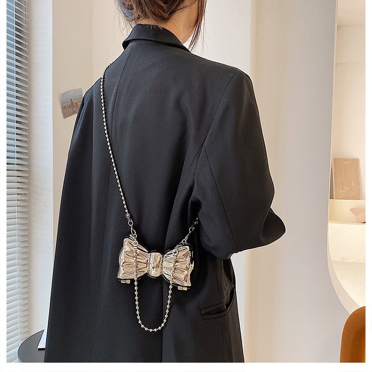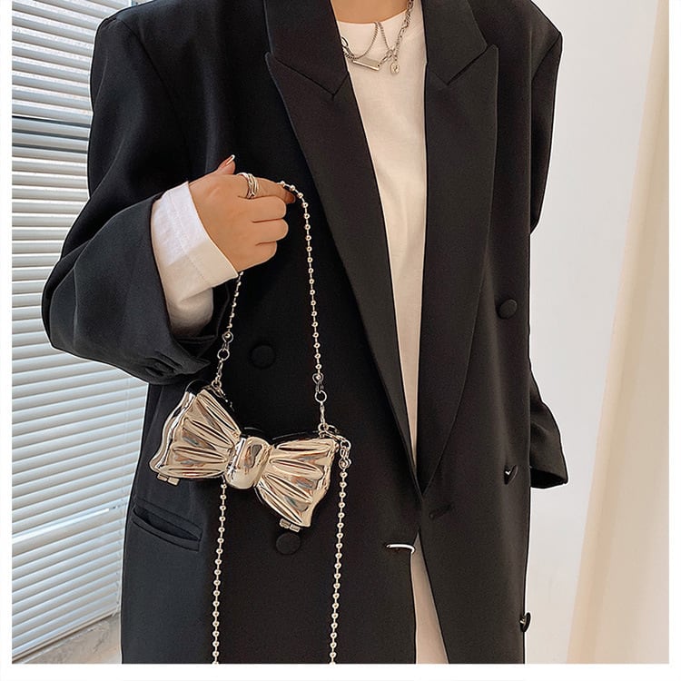 リボンモチーフ メタリックボックスチェーンバッグ・ハンドバッグ シルバー BA00779
