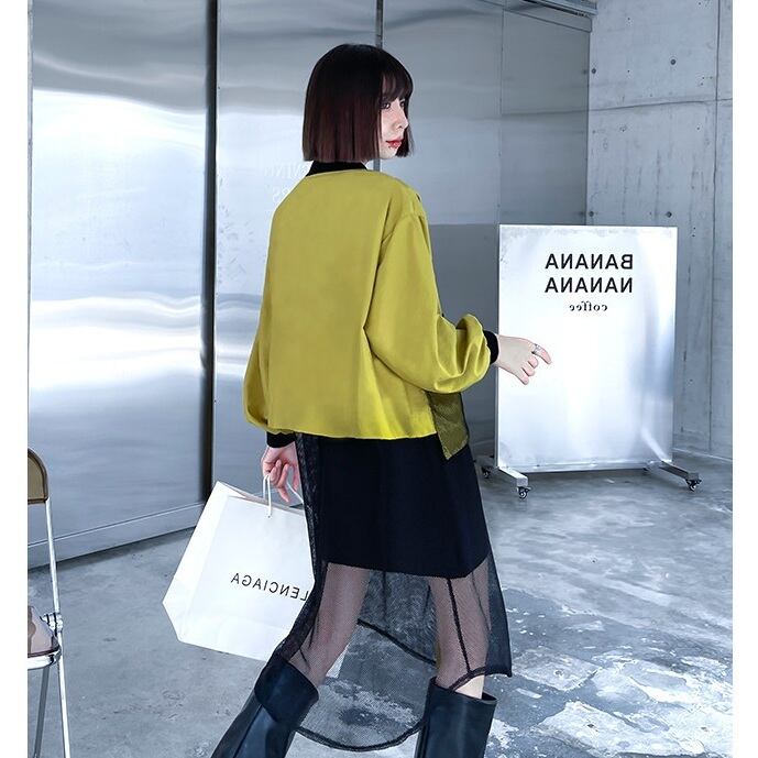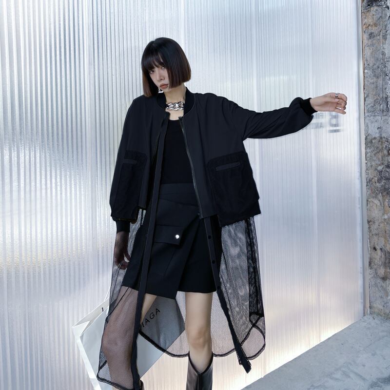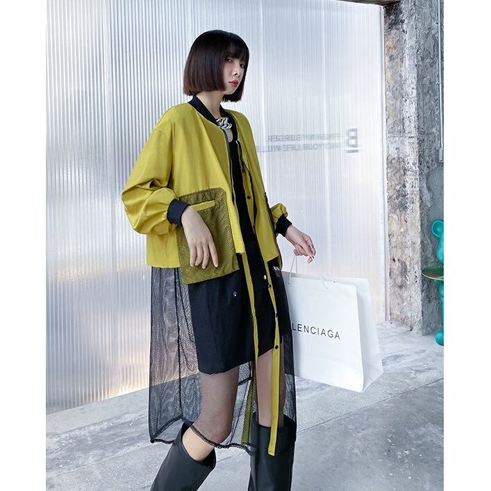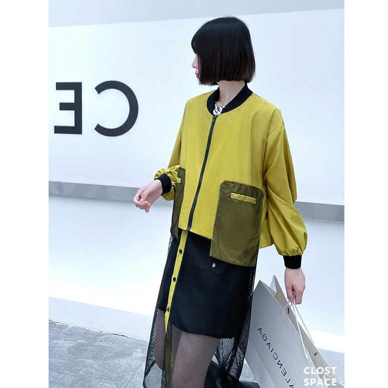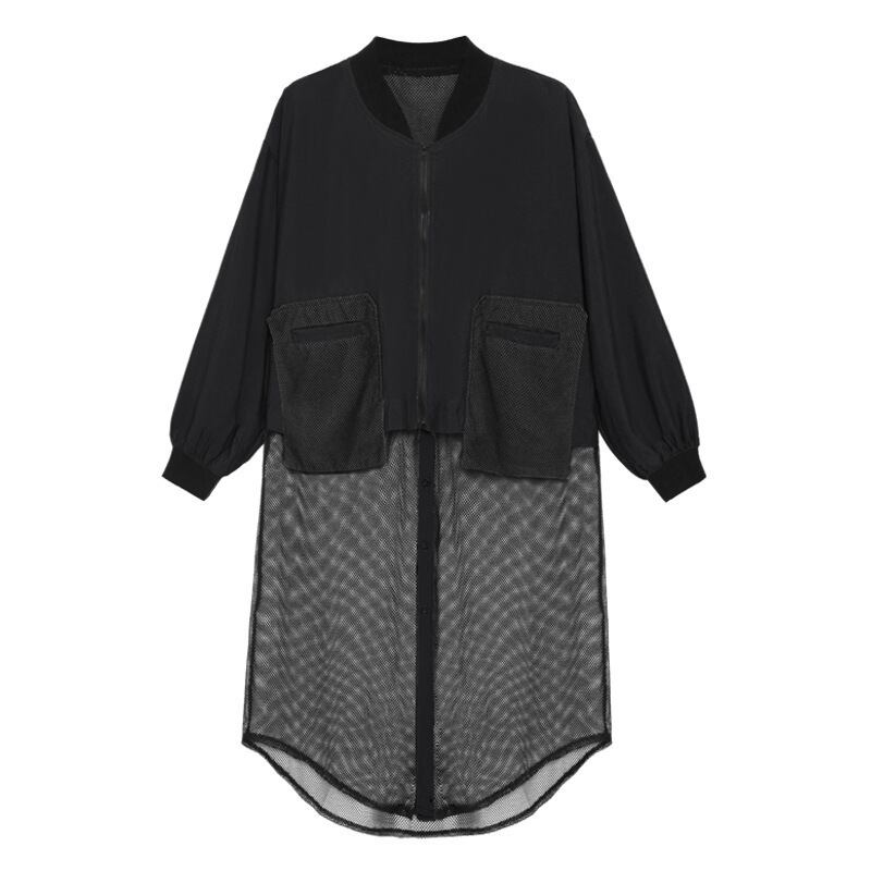 ノーカラーのジャケット+メッシュ素材のコートをドッキングしたコートです。ウエストからのメッシュ素材で透け感のある、トレンド感のあるスタイリングが完成します。衿と袖口には伸縮性のあるリブがあり、少し肌寒い季節の防寒性もばっちりです。アウトドアやスポーツ観戦のようなアウトドアのシーンから、パーティーなどのドレッシーなシーンまで、さらっと羽織れる使いやすいデザインです。春・夏・秋におすすめの使いやすいコートです。