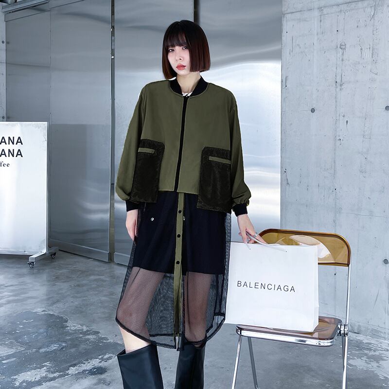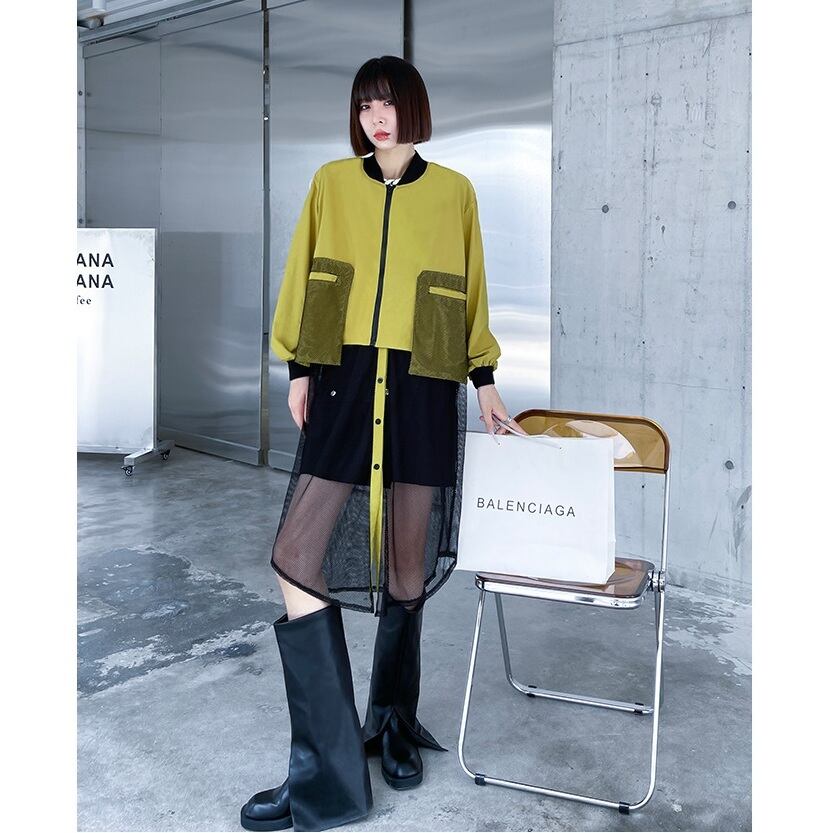 ノーカラーのジャケット+メッシュ素材のコートをドッキングしたコートです。ウエストからのメッシュ素材で透け感のある、トレンド感のあるスタイリングが完成します。衿と袖口には伸縮性のあるリブがあり、少し肌寒い季節の防寒性もばっちりです。アウトドアやスポーツ観戦のようなアウトドアのシーンから、パーティーなどのドレッシーなシーンまで、さらっと羽織れる使いやすいデザインです。春・夏・秋におすすめの使いやすいコートです。
