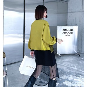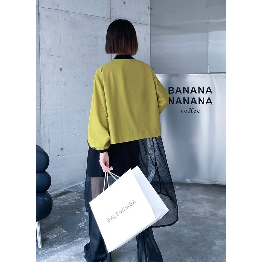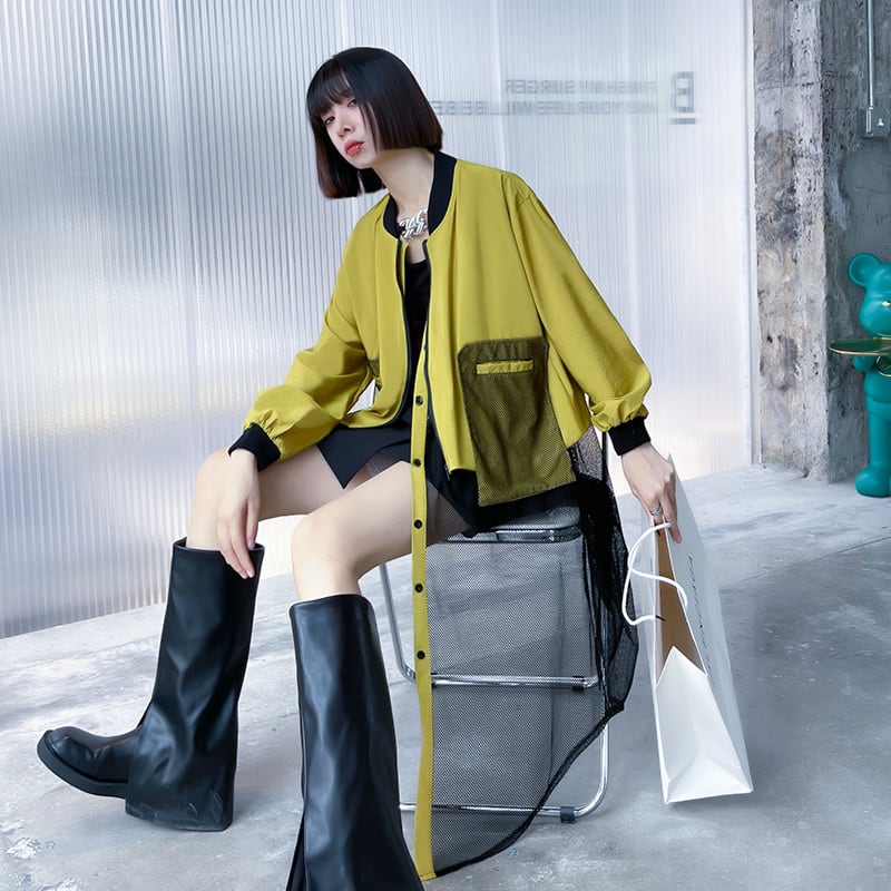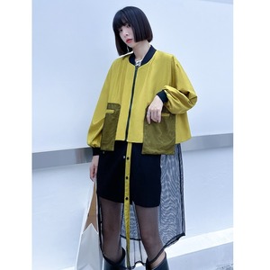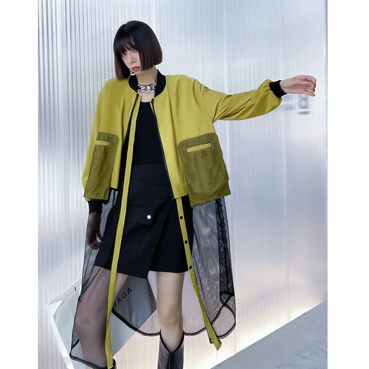 バイカラーノーカラージャケット+メッシュコンビネーションコート イエロー CT00134