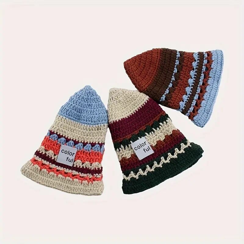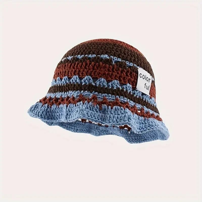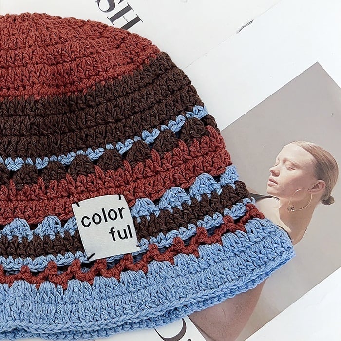 マルチカラー クロシェバケットハット ブルー/ブラウン BO00145