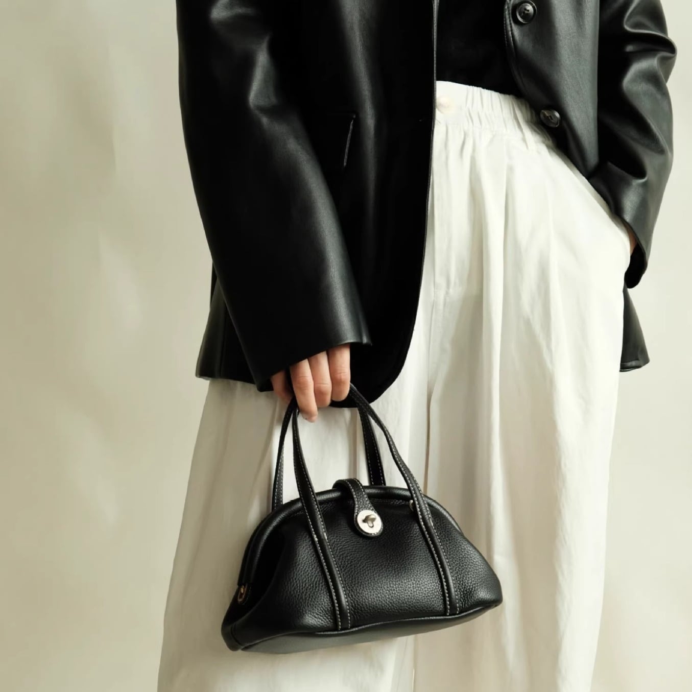コロンとしたフォルムがポイントのスモールサイズのボストンバッグです。ドクターズバッグのようなデザインでマチも広く、見た目よりもすっきり荷物を収納できます。ショルダーストラップは取り外し可能、2wayにお使いいただけます。スタイリッシュでシンプルなデザインですので、コーディネートを選ばず、幅広いスタイルに合わせられます◎