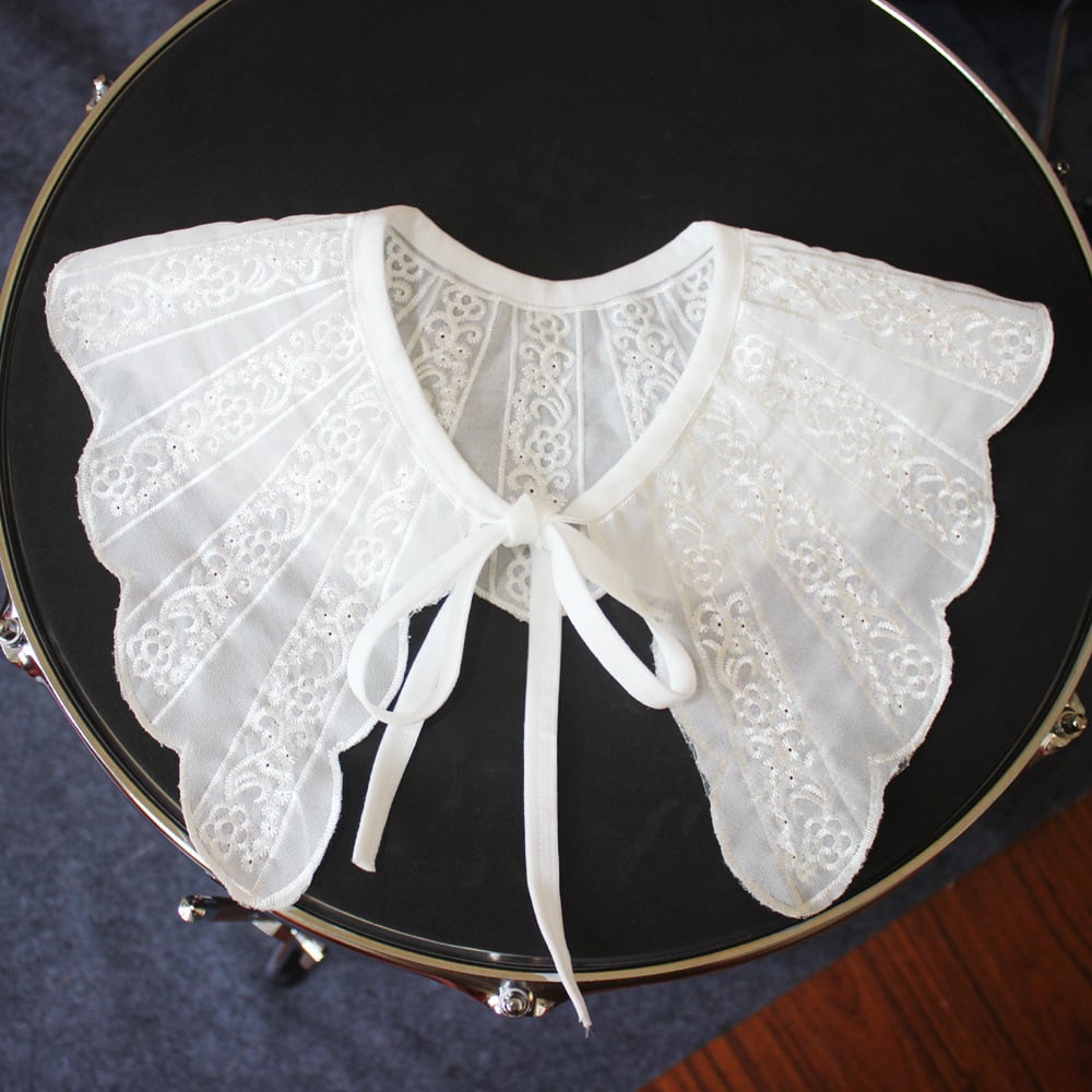 スカラップレース フロントリボン 付け襟・ティペット ホワイト FK00128