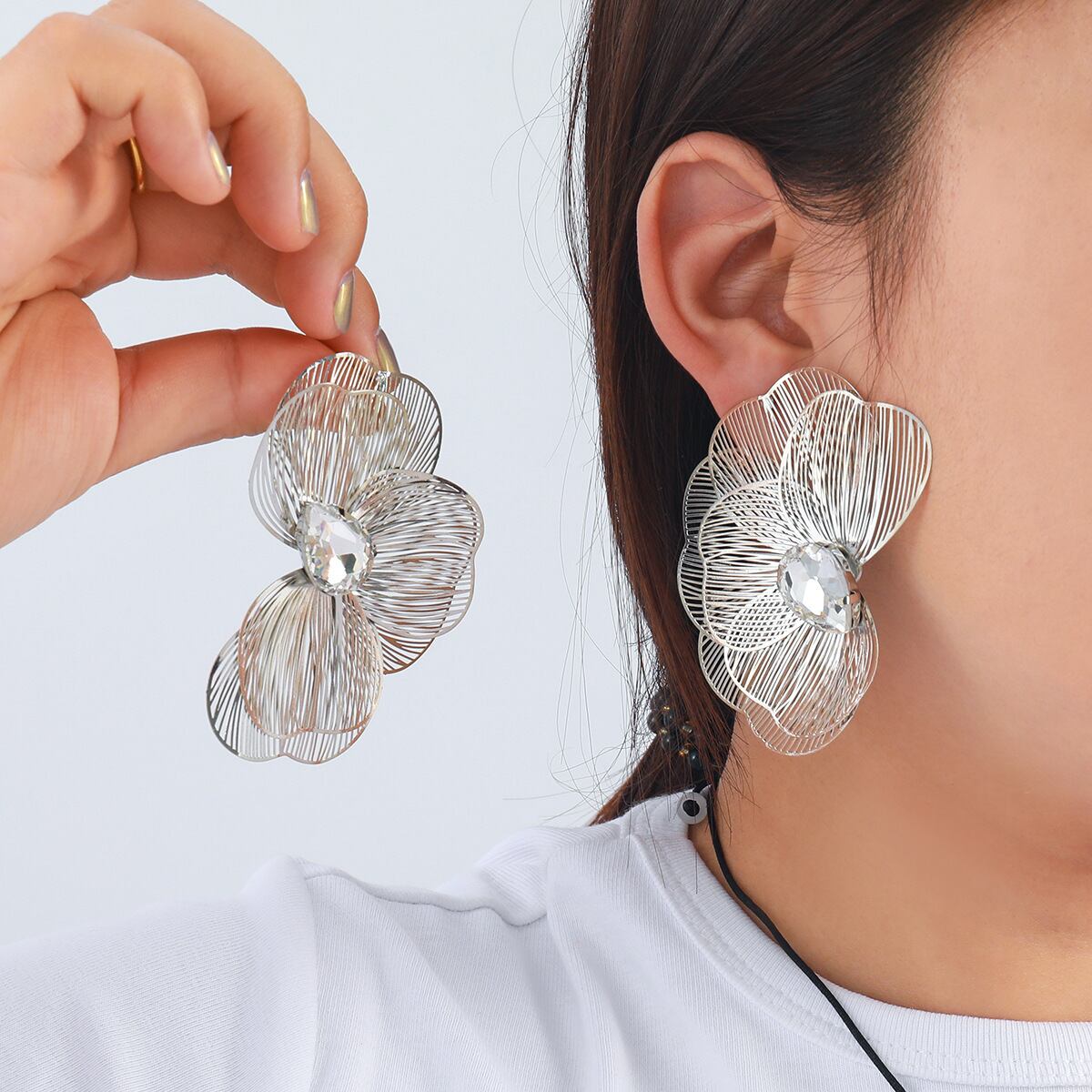 フラワーペタル アシンメトリーデザインピアス シルバー PR00230