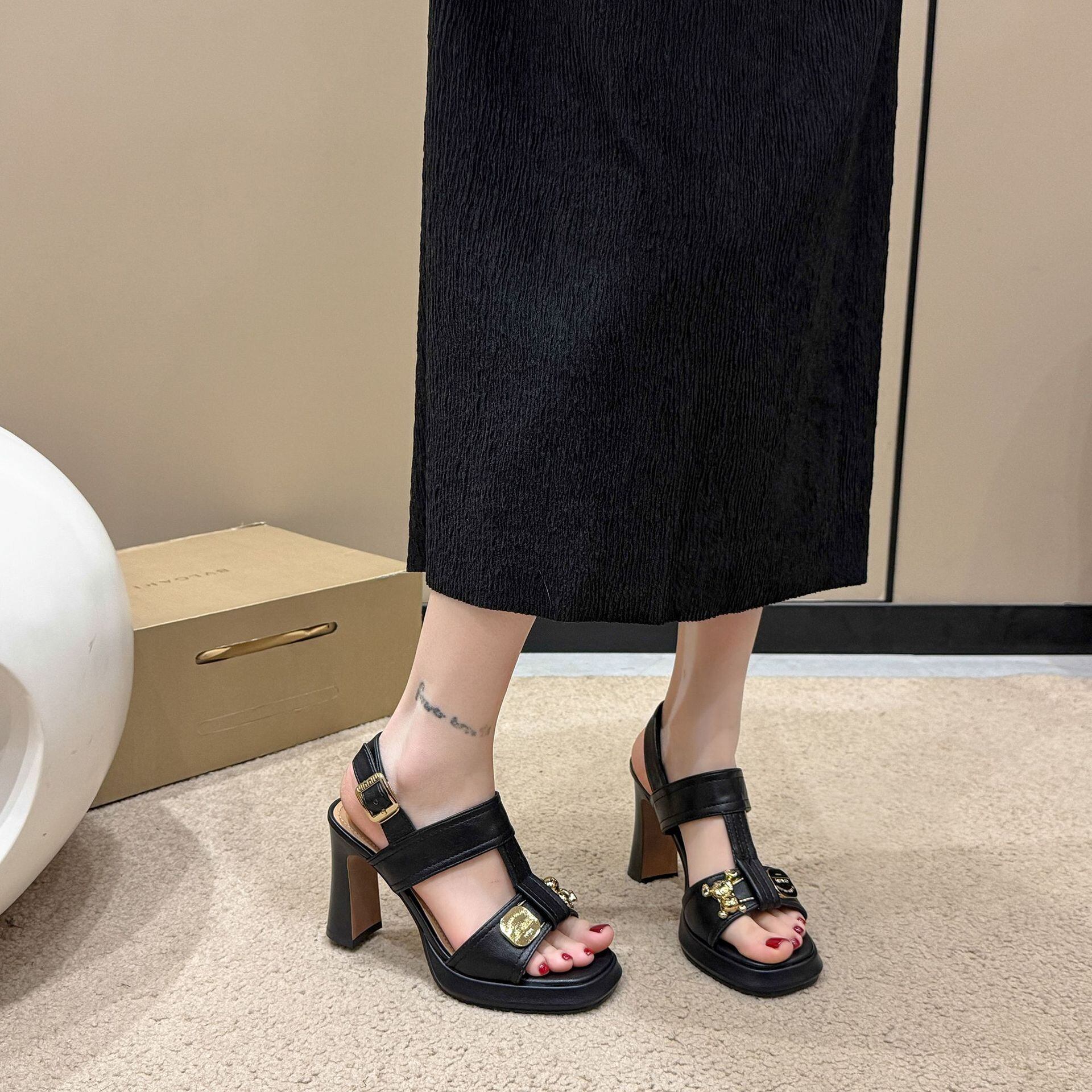 メタルテディベア+スクエアチャーム スリングバックヒールサンダル ブラック SH00388
