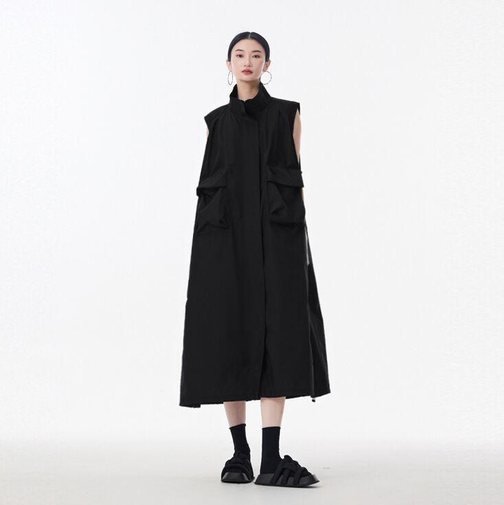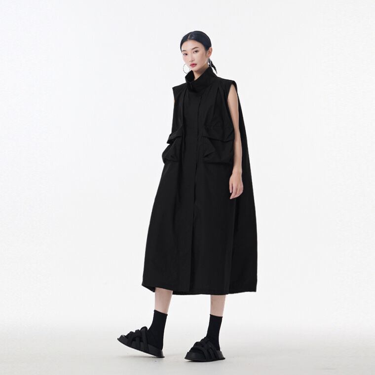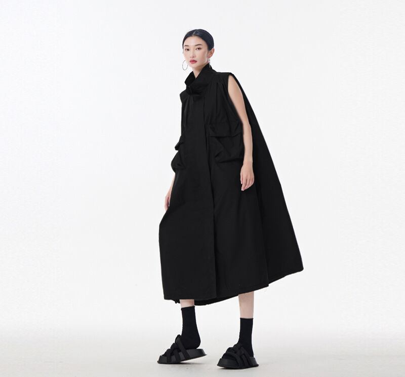 スタンドカラー ノースリーブ シルエットアレンジワンピース ブラック OP00391