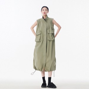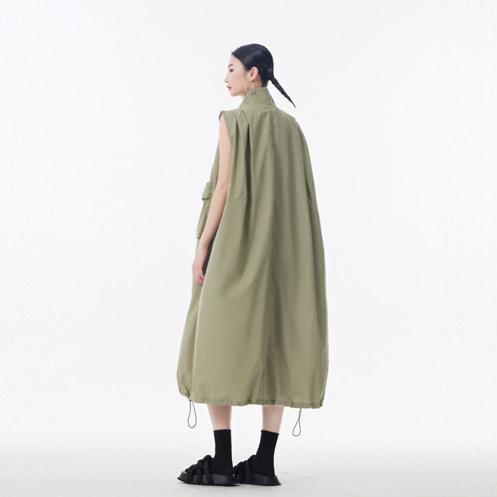スタンドカラー ノースリーブ シルエットアレンジワンピース カーキ OP00390