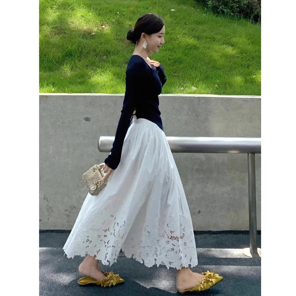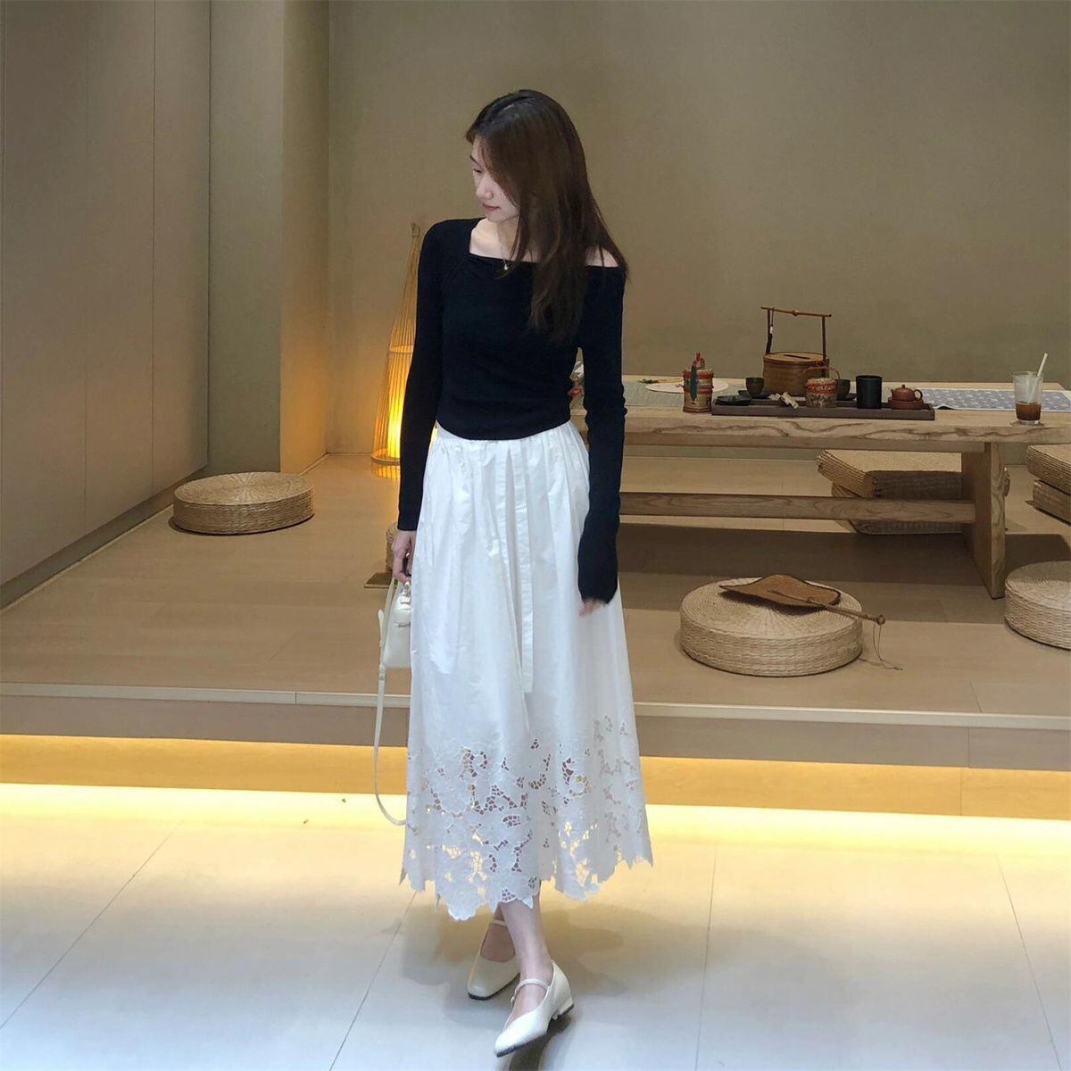 バックレースアップトップス+レースロングスカート セットアップ SU00077