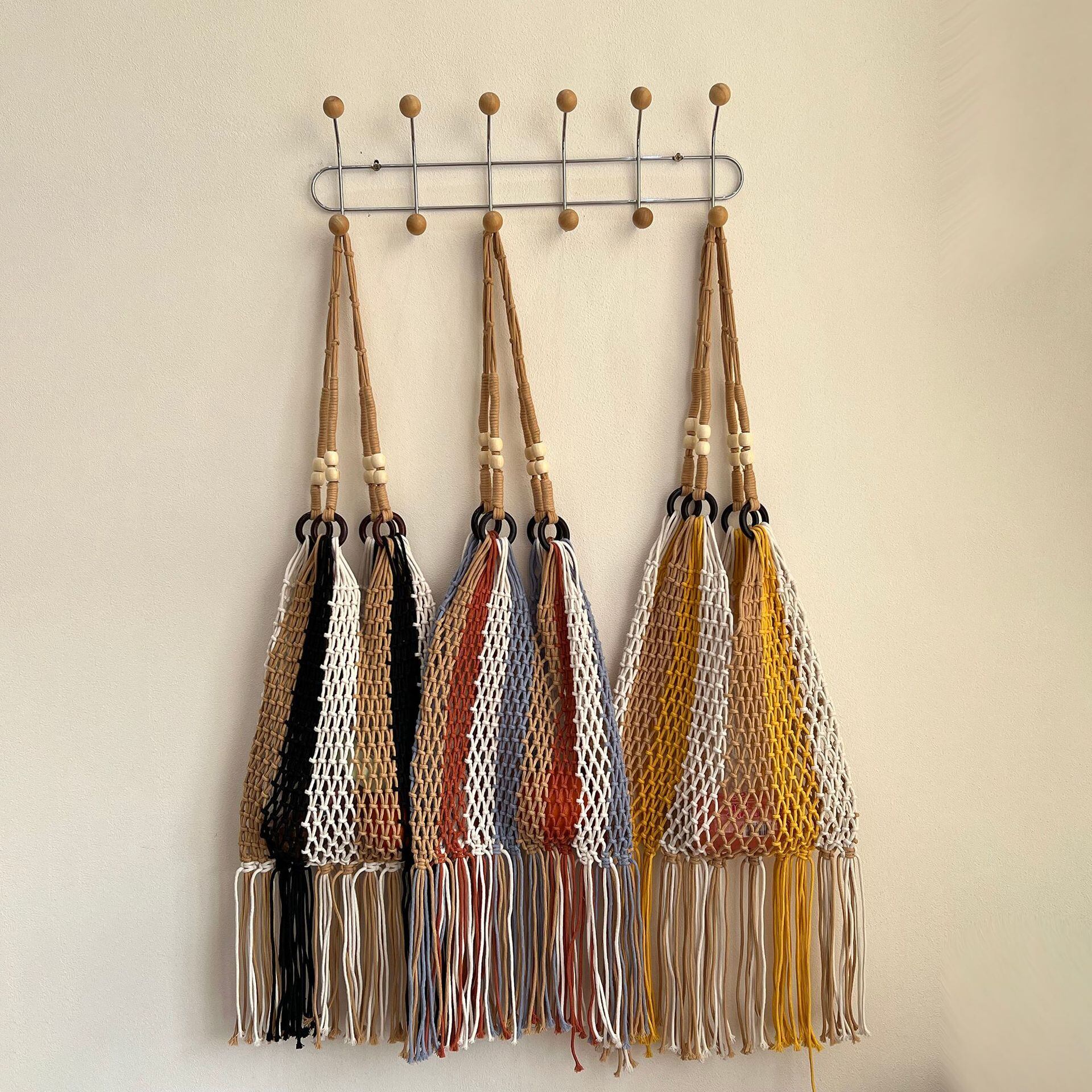 キャンプや登山で使用するクライミングロープを編み込んだユニークなメッシュバッグです。伸縮性があり、見た目よいもすっきりと荷物を収納できます。ドレッシーなスタイルのにも、デニムなどのカジュアルなコーデにもよく似合います◎ 使いやすいマルチカラーで、コーディネートのアクセントにおすすめのメッシュバッグです。