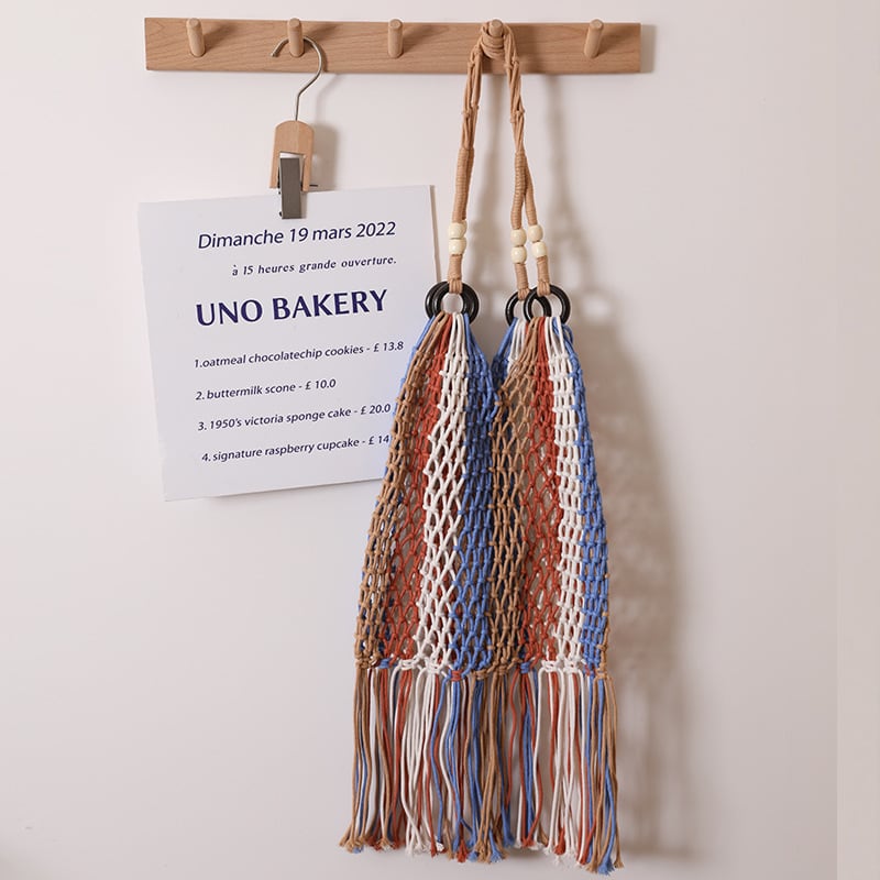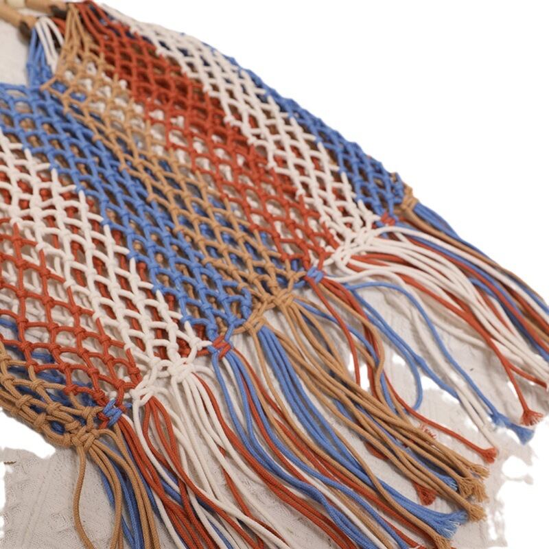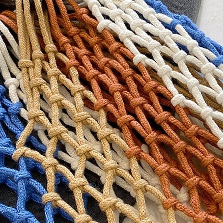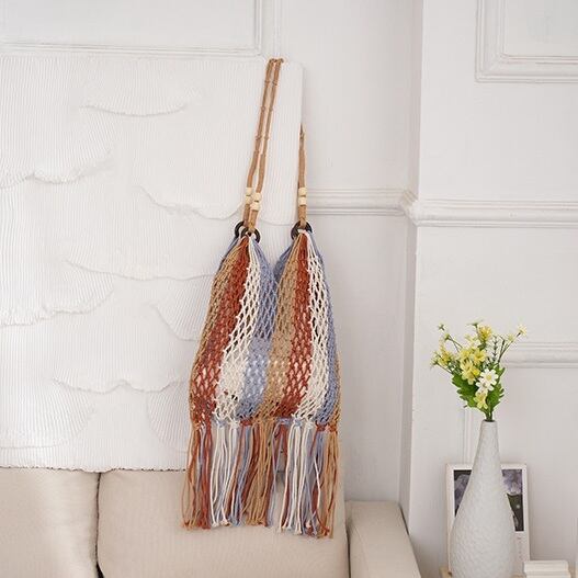 キャンプや登山で使用するクライミングロープを編み込んだユニークなメッシュバッグです。伸縮性があり、見た目よいもすっきりと荷物を収納できます。ドレッシーなスタイルのにも、デニムなどのカジュアルなコーデにもよく似合います◎ 使いやすいマルチカラーで、コーディネートのアクセントにおすすめのメッシュバッグです。