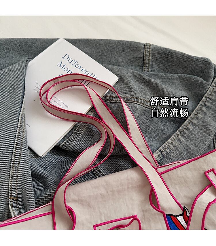 スカーフの刺繍とバイカラーのステッチがユニークなトートバッグです。バックルや底のリベットまで入ったステッチなど、こだわりのデザインです。マチも広く、荷物の多い方も満足できる大きめサイズです。ショッピングバッグ、フィットネスやスポーツ、小旅行用のサブバッグにもおすすめです。コーディネートのアクセントにぴったりのユニークなデザインです。