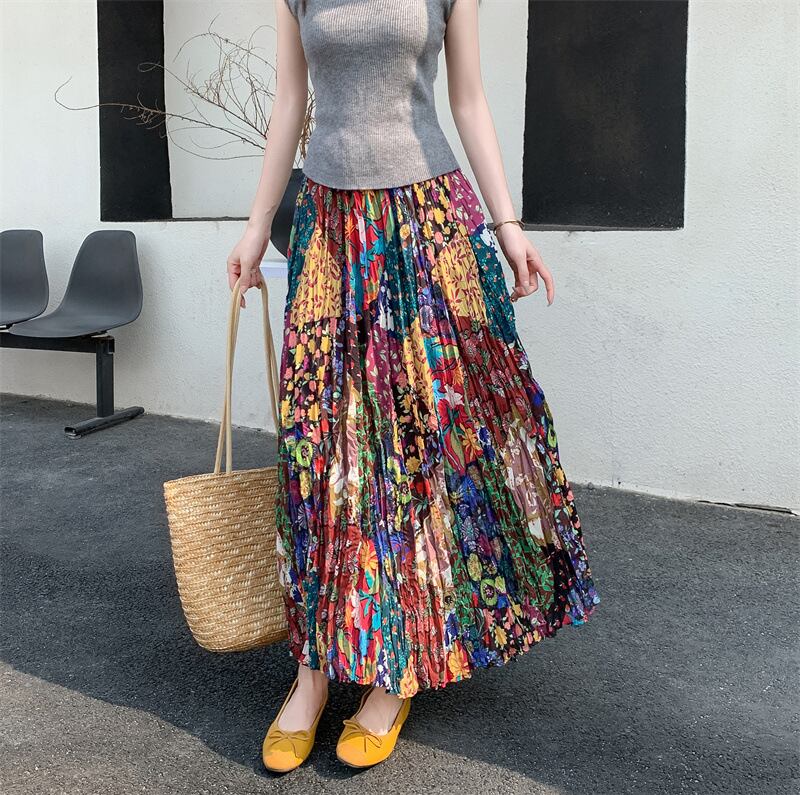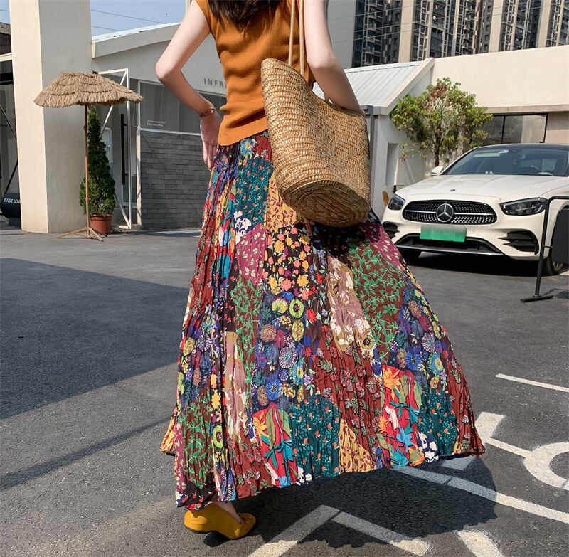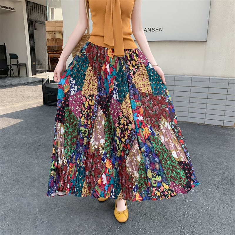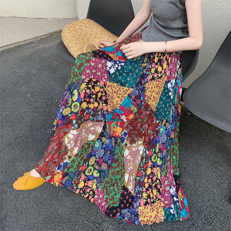 パッチワーク マルチフローラルモチーフ ロングフレアスカート SK00273