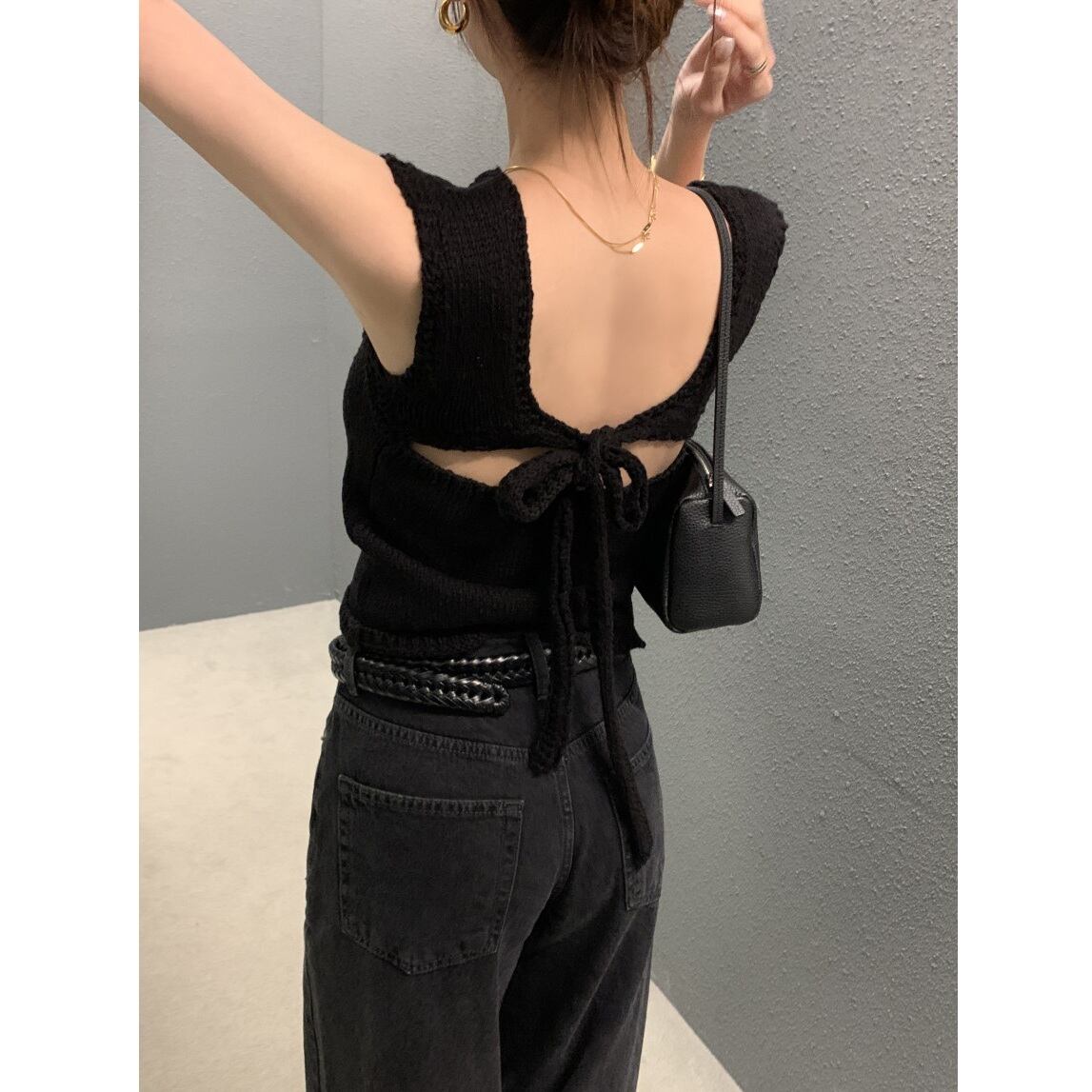 バックリボン+カットアウト ノースリーブニット ブラック NI00417