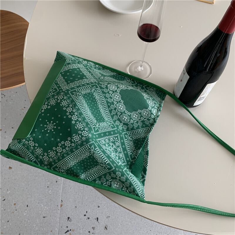 ペイズリープリント ナイロントートバッグ・ショルダーバッグ グリーン BA00829