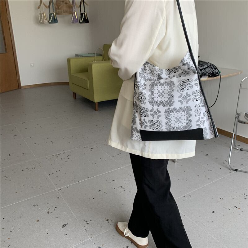 ペイズリープリント ナイロントートバッグ・ショルダーバッグ ホワイト BA00827