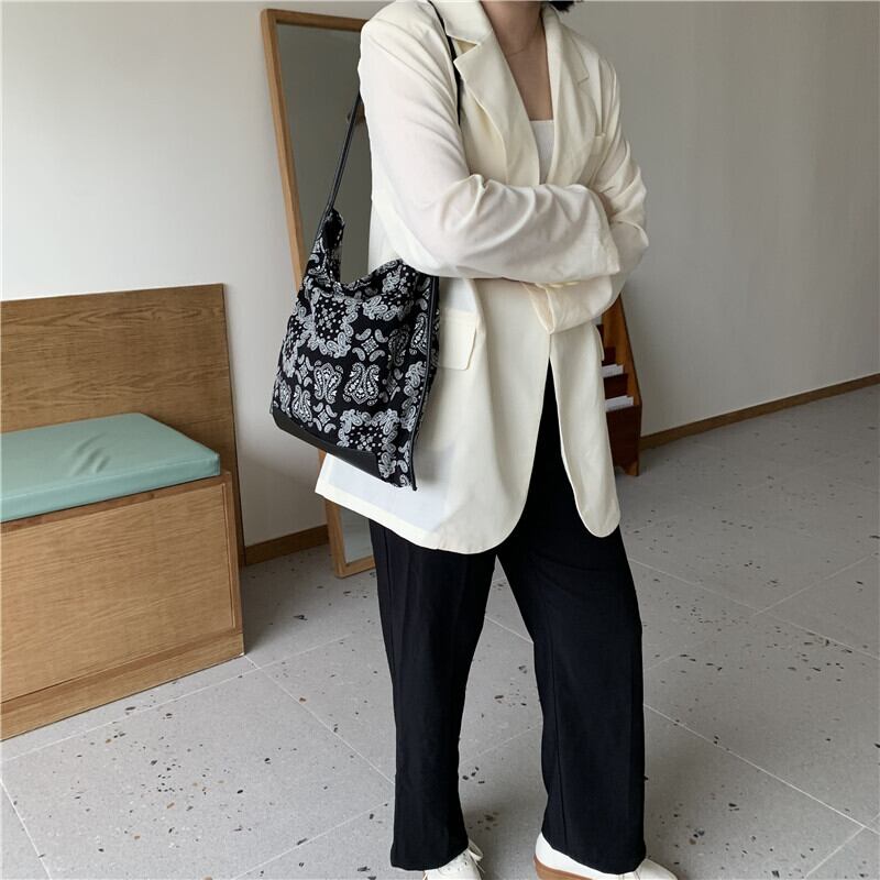 ペイズリープリント ナイロントートバッグ・ショルダーバッグ ブラック BA00829