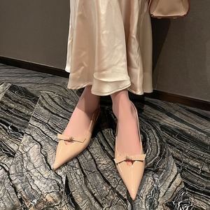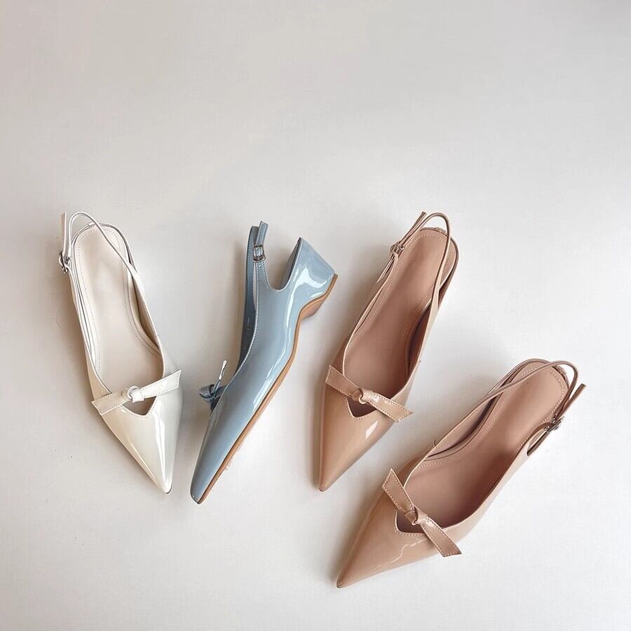 パテントレザー ボウタイ スリングバック ヒールパンプス ベージュ SH00394
