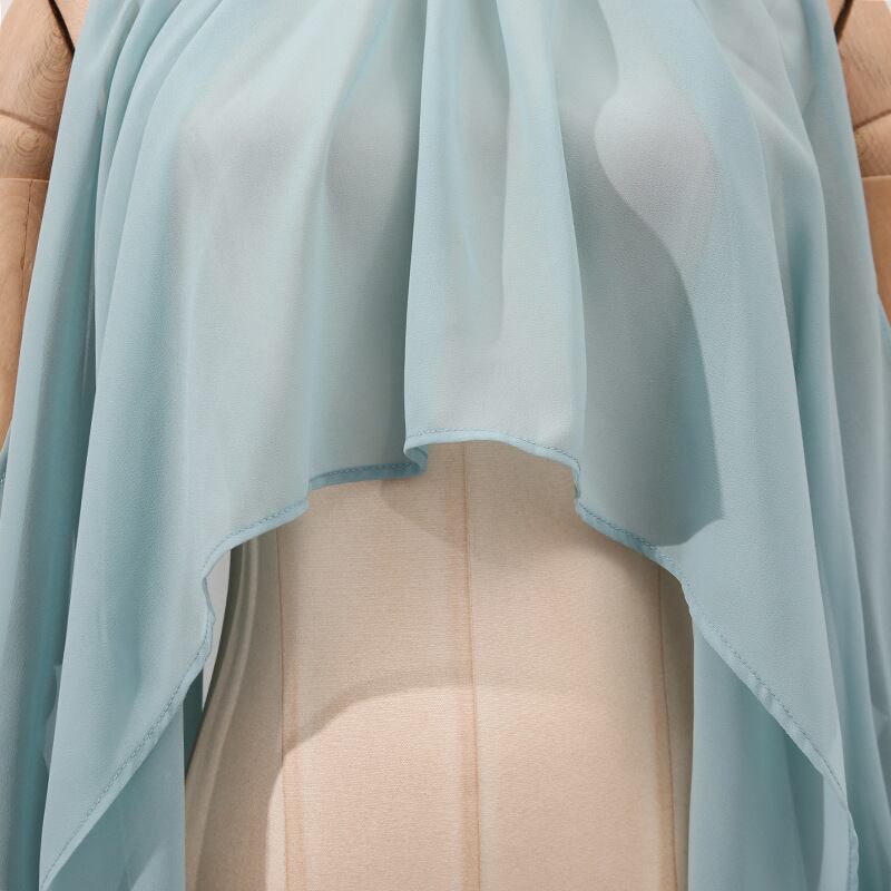 リボンタイ+カットアウトスリーブ アシンメトリー シフォントップス ベビーピンク CS00178