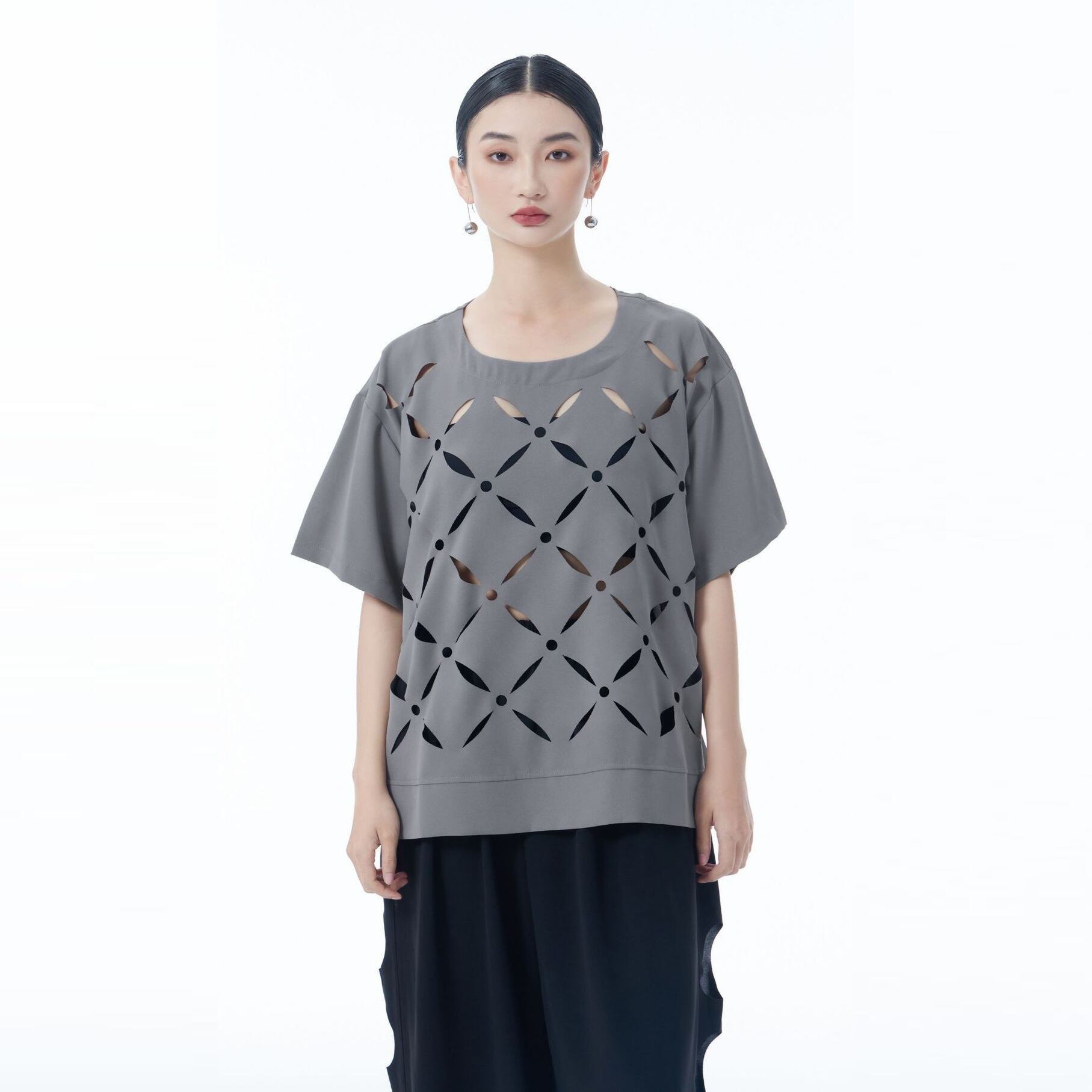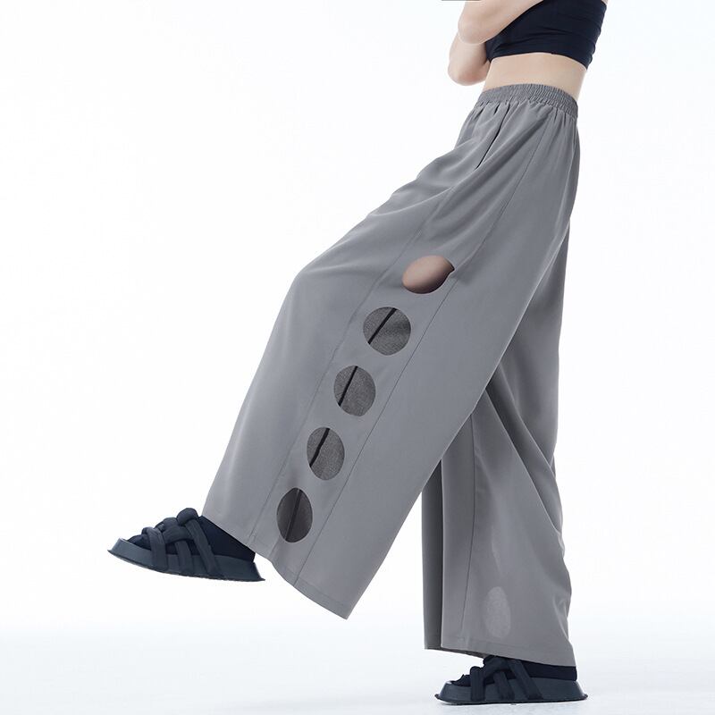 カットアウトデザイン 半袖トップス+ワイドレッグパンツ セットアップ グレー SU00080