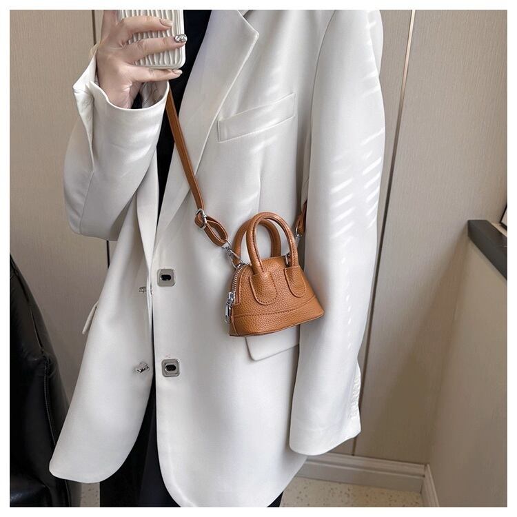 エコぺブルレザー ショルダーストラップ付 マイクロバッグ・ポシェット ブラウン BA00838