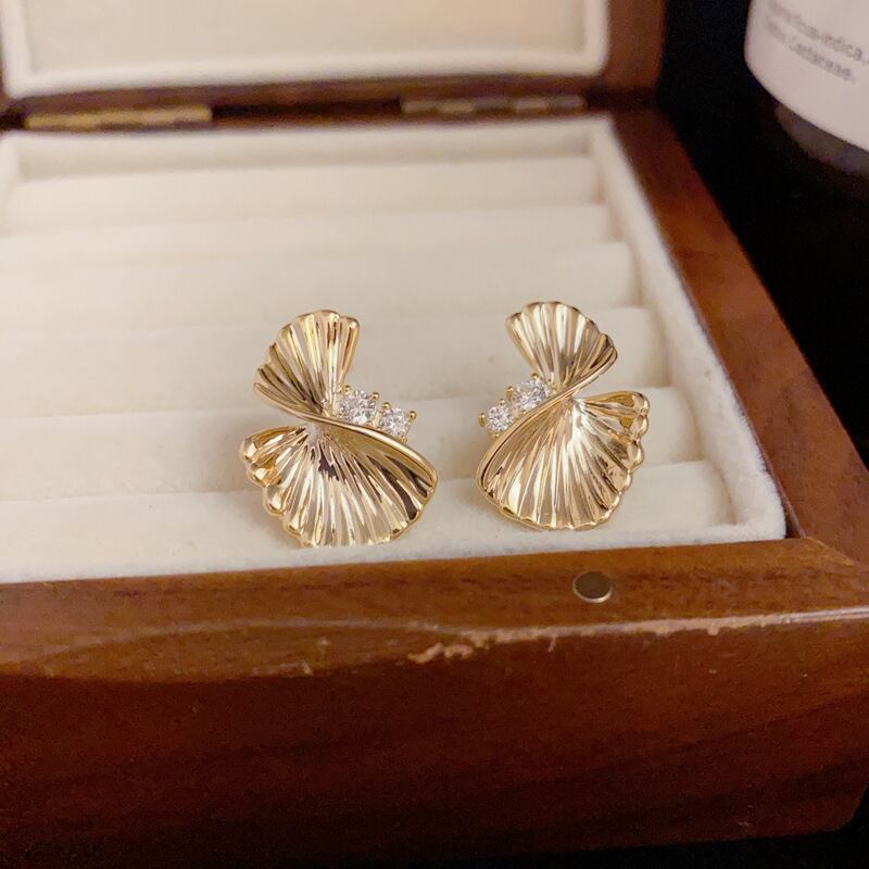 貝殻のようなデザインのツイストメタルに2粒のジルコニアをアレンジしたスタッズピアスです。動きのある、スタイリッシュでめずらしいデザインが魅力です。マニッシュなスーツコーデから、Tシャツとデニムのカジュアルなコーデまで、1年を通して、どんなスタイルのアクセントにもなる、華やかで使いやすいピアスです。