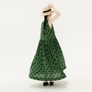 ポルカドット・水玉 ノースリーブ ロングワンピース グリーン/ブラック OP00400