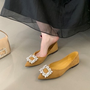 スクエアビジュー ポインテッドトゥ スウェードフラットパンプス マスタード SH00092