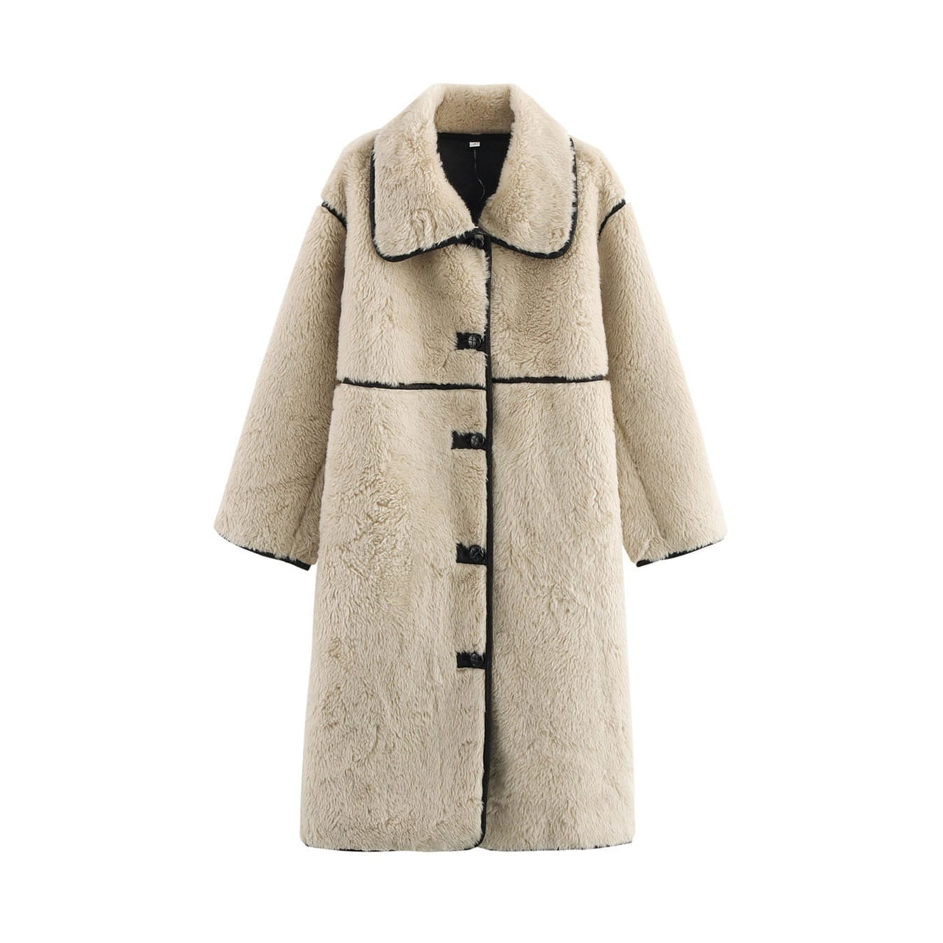 ブラックのライニングがポイントのエコシアリング素材のロングコートです。トレンドのシアリング素材でお手持ちのアイテムがフレッシュに生まれ変わります。シンプルなデザインで合わせるアイテムを選ばず、幅広いコーディネートにお使いいただけます。しっかりとした素材と縫製で温かさも◎です。お求めやすいプライスも魅力です♪