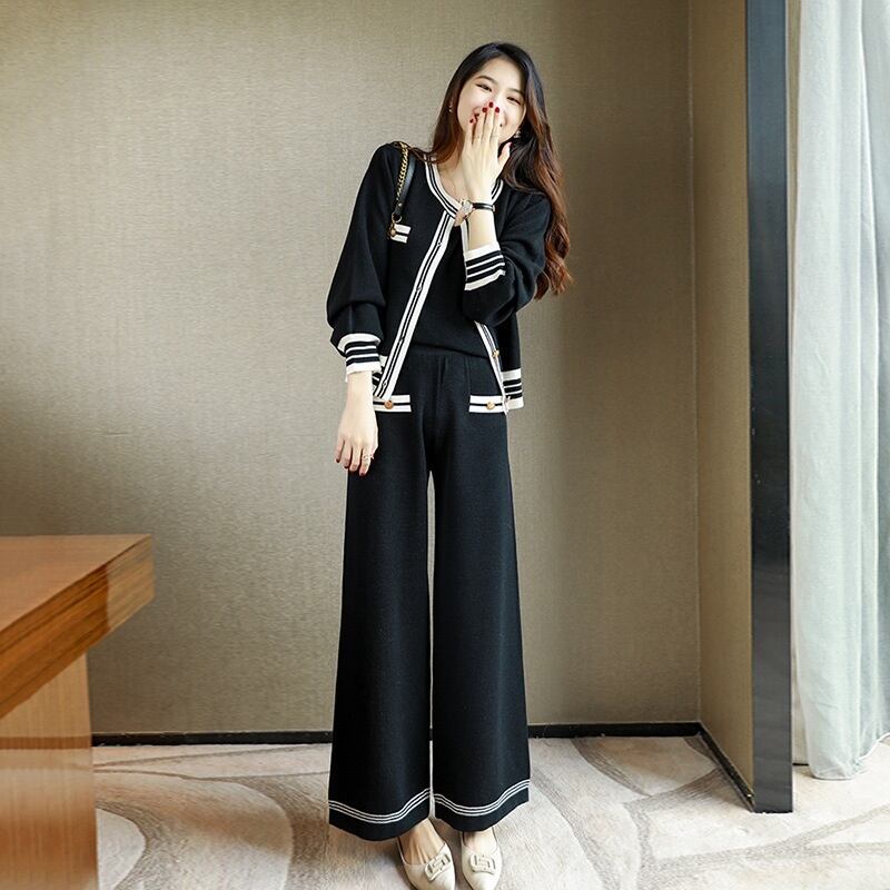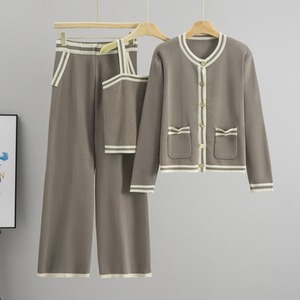 パイピングカーディガン+キャミソール+ワイドパンツ セットアップ グレー SU00085