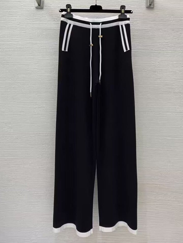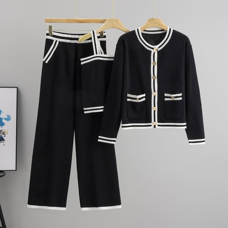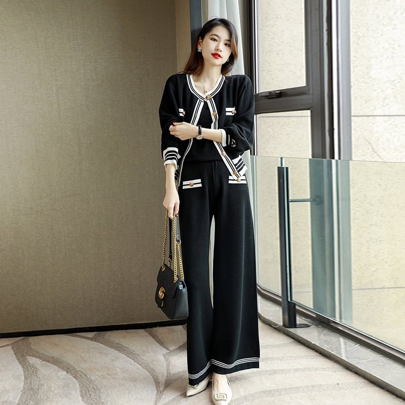 パイピングカーディガン+キャミソール+ワイドパンツ セットアップ ブラック SU00083
