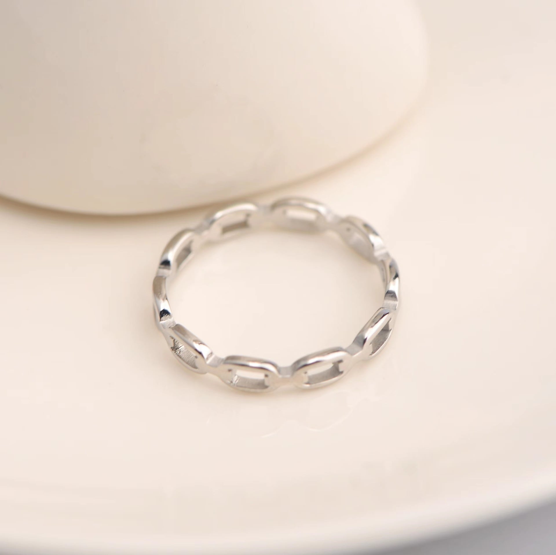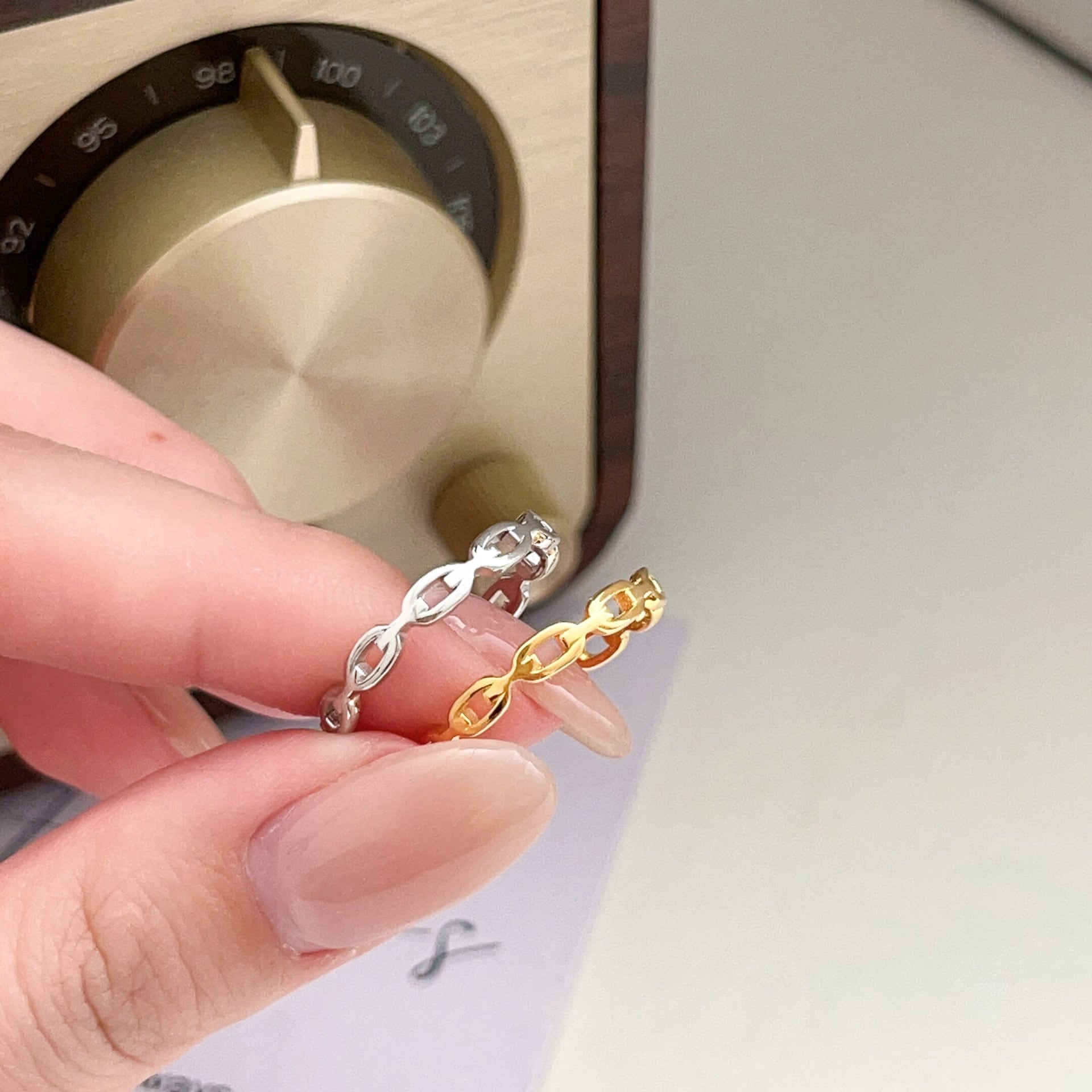 オーバルチェーンのモチーフがスタイリッシュなデザインリングです。落ち着いたカラーリングと程良いボリューム感で、華やかで美しい指先に仕上がります。マニッシュなスーツスタイルから、カジュアルなデニムスタイル、エレガントなドレススタイルまで、スタイルやシーンを選ばず、オールマイティーにお使いいただけます。