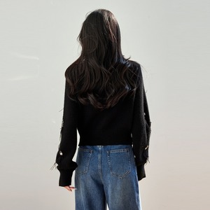 スパンコールとフェザーのデコレーションがエレガントなニットカーディガンです。1枚で華やかでフェミニンな雰囲気に仕上がります。パンツでも、スカートでもお手持ちのボトムスとスタイリングしやすいデザインです。ショート丈でスタイルアップも叶います!