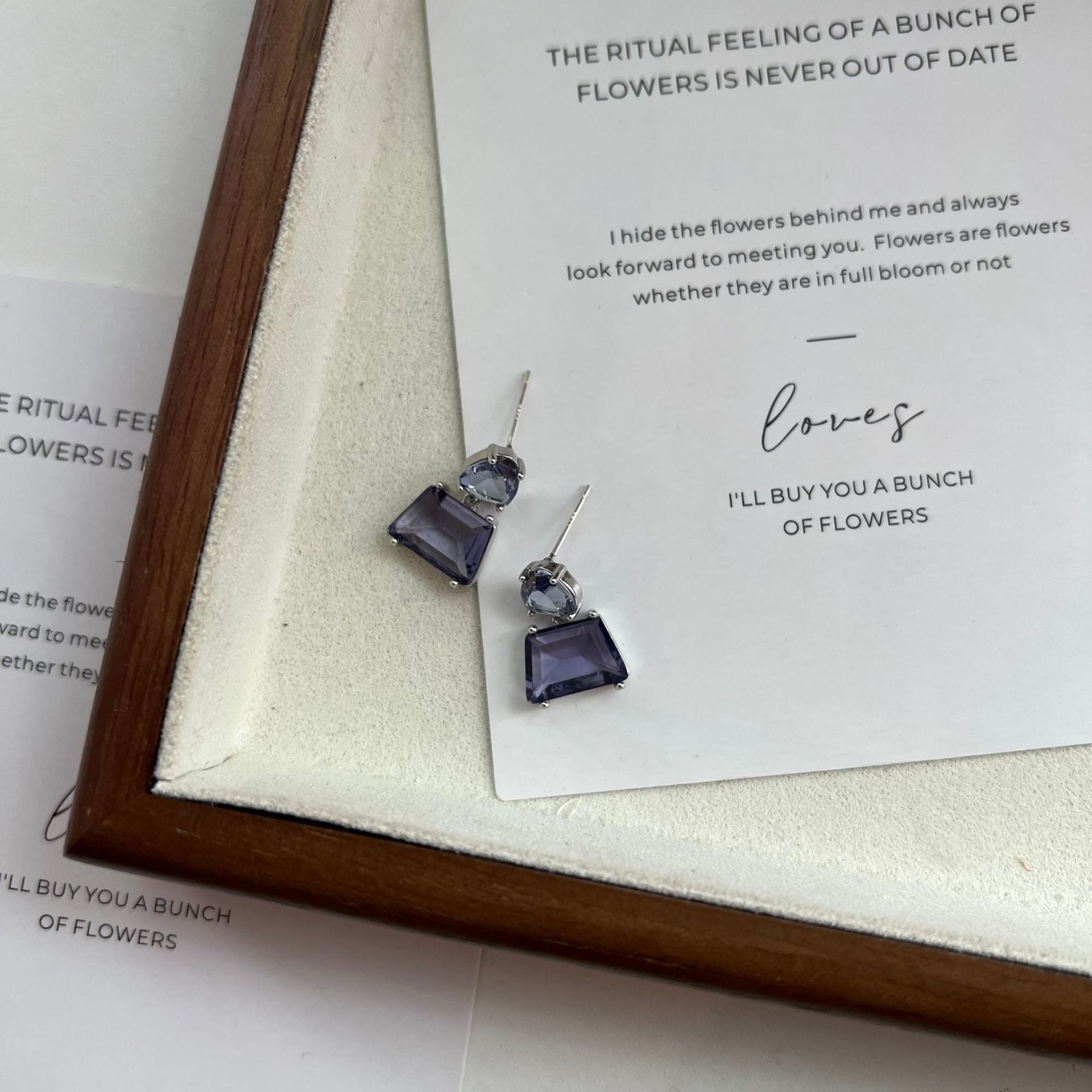 トラペゾイド+トライアングルジルコニア ドロップピアス ライトパープル PR00238