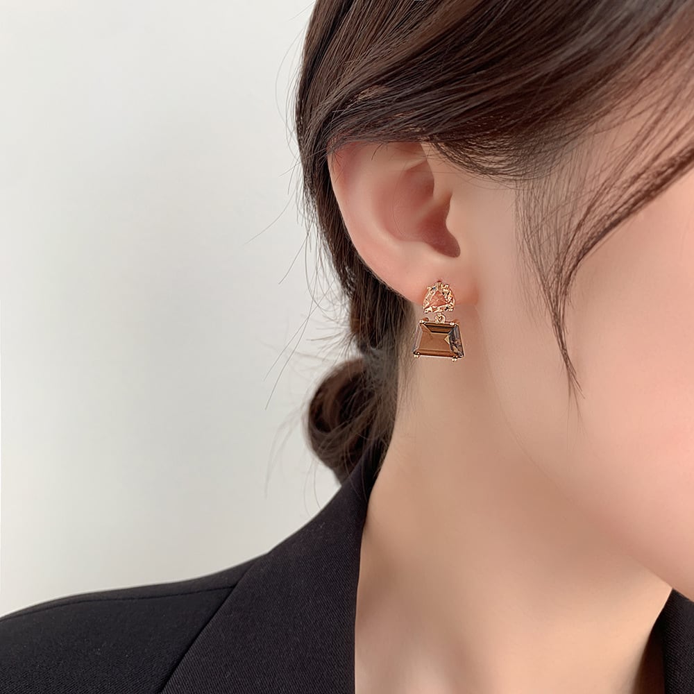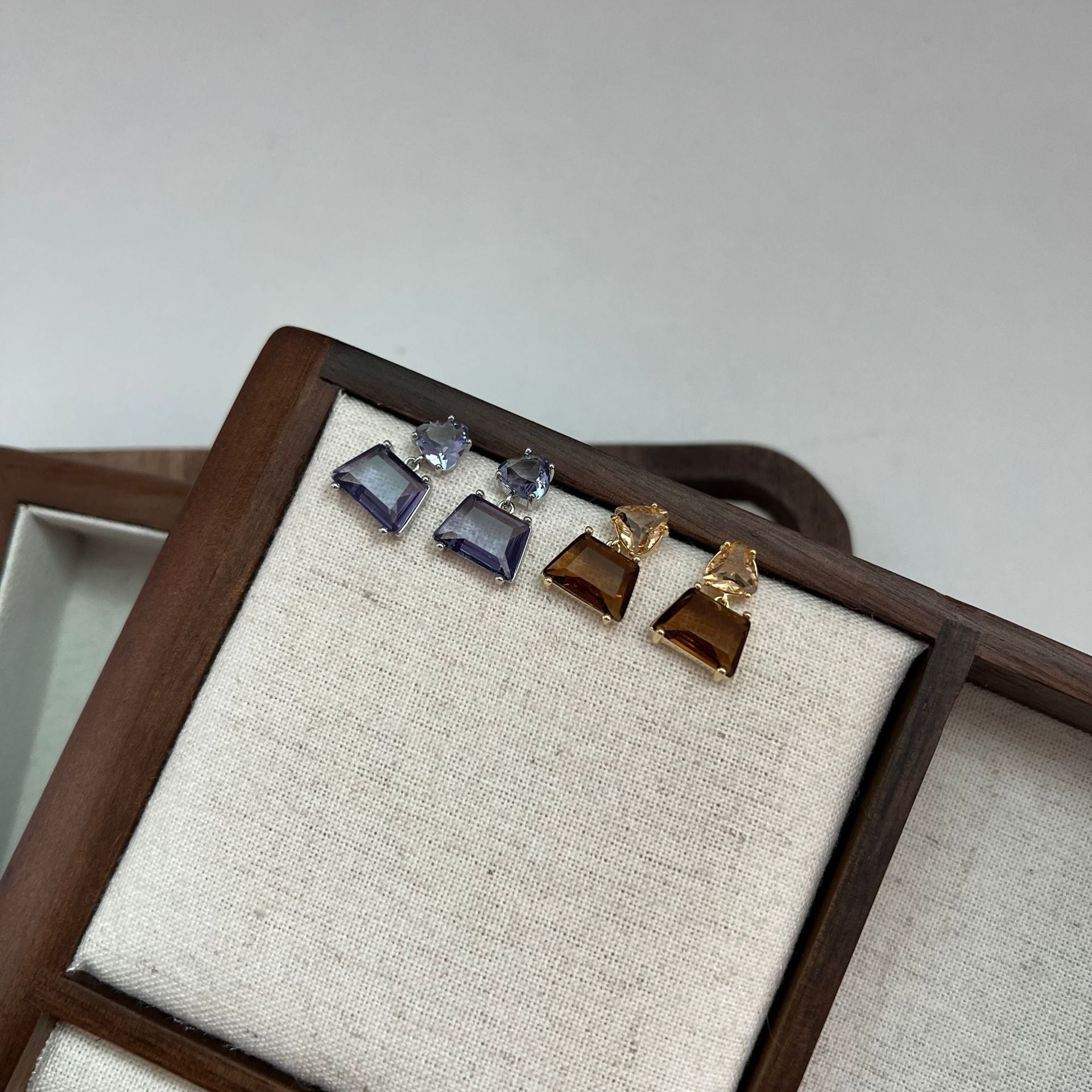 台形と三角形のジルコニアをアレンジしたドロップピアスです。ちょうど良いサイズ感でエレガントな揺れ感が楽しめます。カジュアルなデニムスタイル、ドレッシーなスタイルまで、様々なスタイルに良く似合います。1年を通してお使いいただけるシンプルなデザインです。