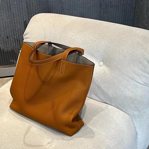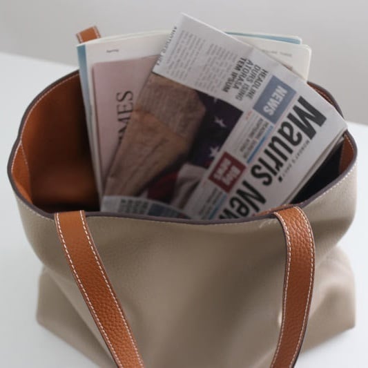 ヴィヴィッドなカラーリングの上質なペブルドレザーを表と裏に使用した、リバーシブルのトートバッグです。スタイリングや気分に合わせて、キャメルとトープベージュを切り替えてお使いいただけます。マチも広く、見た目よりすっきりと荷物を収納できます。1年を通して、コーディネートのアクセントにぴったりのスタイリッシュなデザインです。リアルレザーの割にお求めやすいプライスも魅力です。