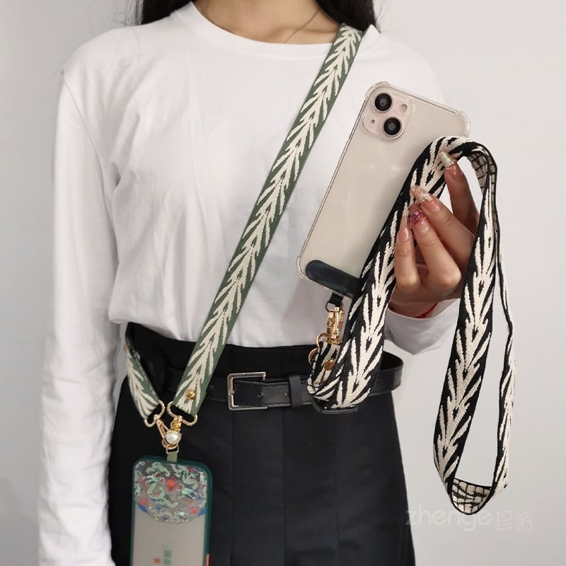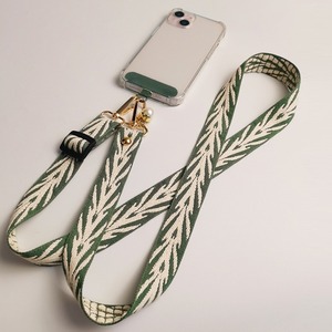 北欧風のボタニカルモチーフのベルトとパールチャームがスタイリッシュな斜めがけ用スマートフォンストラップです。スタイリッシュなデザインと丈夫さで、デザイン性と機能性どちらも兼ねそろえた便利なストラップです。デイリーユースだけでなく、ライブやフェス、キャンプ、ビーチや旅行など、アクティブなシーンにもお使いいただけます。お財布やポーチ、バッグなどを携帯するバッグストラップとしてもお使いいただけます。