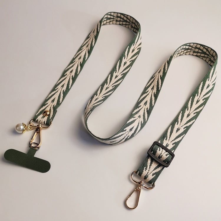 北欧風のボタニカルモチーフのベルトとパールチャームがスタイリッシュな斜めがけ用スマートフォンストラップです。スタイリッシュなデザインと丈夫さで、デザイン性と機能性どちらも兼ねそろえた便利なストラップです。デイリーユースだけでなく、ライブやフェス、キャンプ、ビーチや旅行など、アクティブなシーンにもお使いいただけます。お財布やポーチ、バッグなどを携帯するバッグストラップとしてもお使いいただけます。