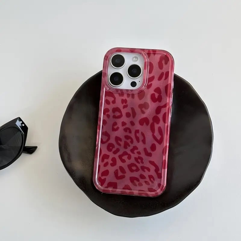 レオパードモチーフ トランスルーセント iPhoneケース ピンク/ワイン TA00243