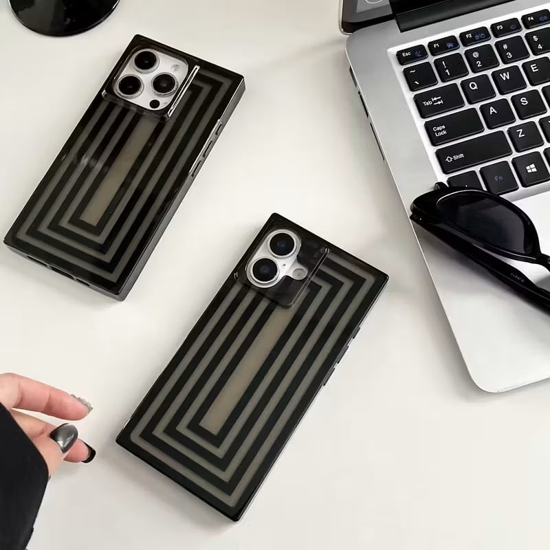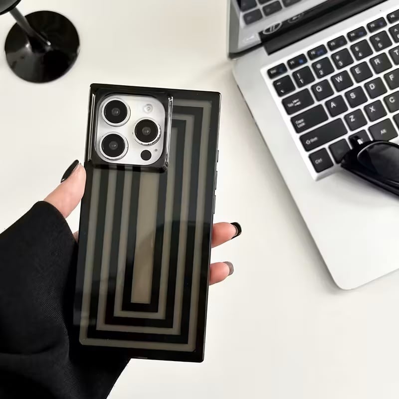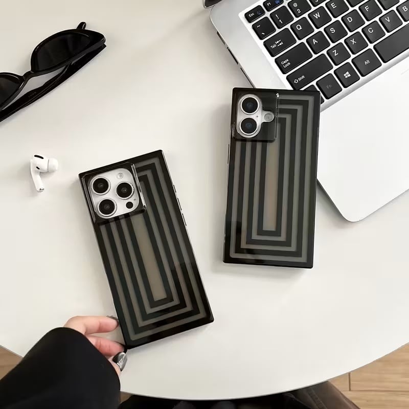 ブラックレクタングル クリアボディー ハードシェル iPhoneケース ブラック TA00242