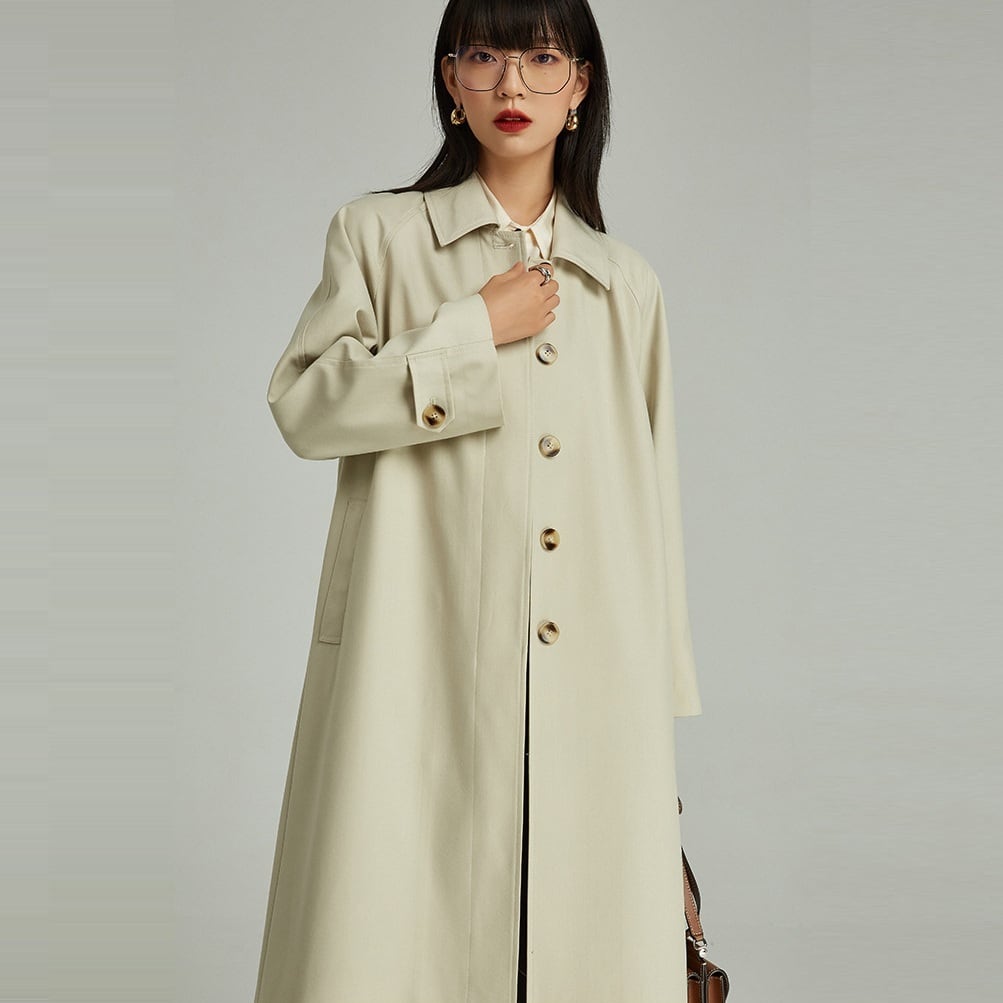 マーブルボタン ステンカラーミドルコート ライトベージュ CT00141