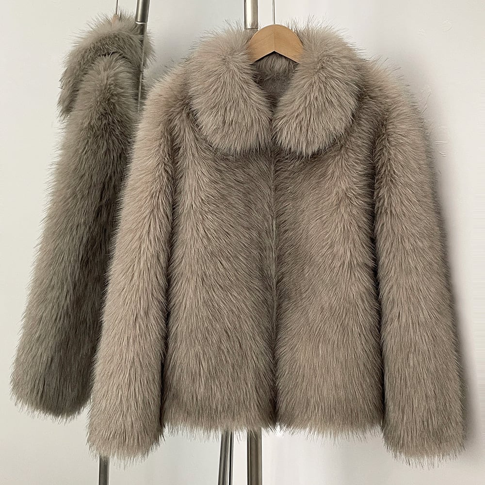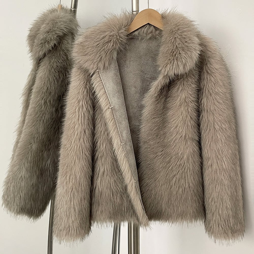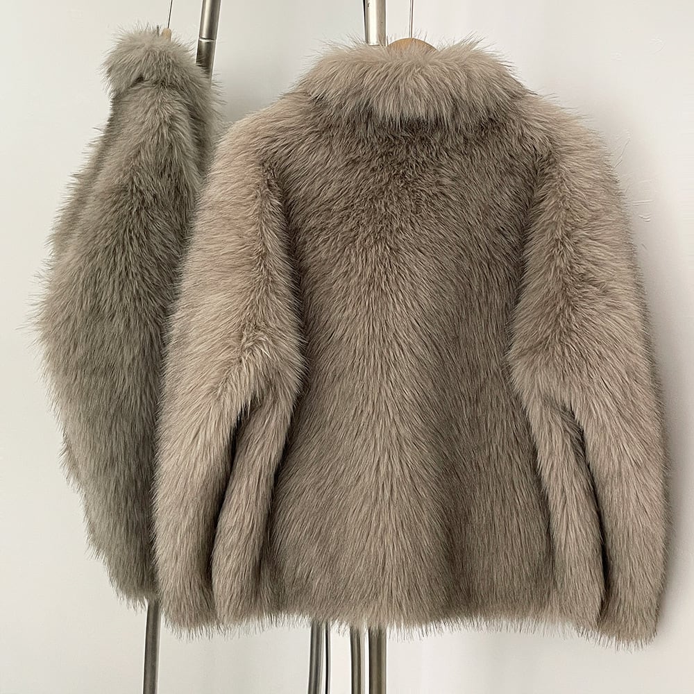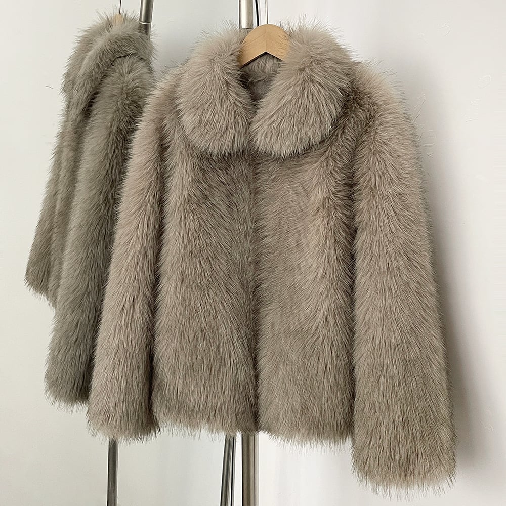 上品なグレージュのエコファーを使用したミドル丈コートです。しっかりとした糸を使用し、シルエットも美しく、高級感のある仕上がりです。裏地にはエコスウェードを使用しており、防寒性も◎です。デニム+スニーカーでも、スカート+ヒールパンプスでも、スタイルを問わず、オールマイティーにお使いいただけるデザインです。冬だけでなく、秋から春先まで3シーズンお使いいただけます。