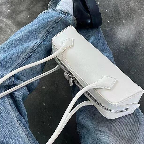 リアルレザー ロングボックス ハンドバッグ アイボリー BA00850