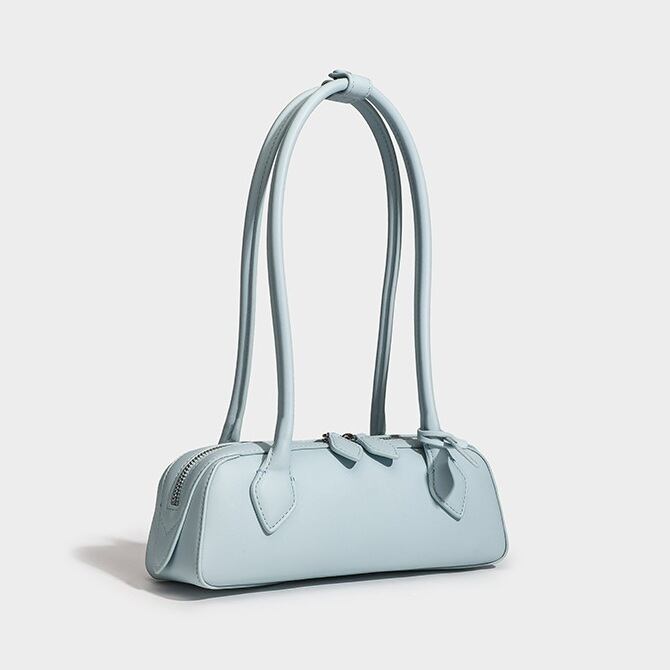 リアルレザー ロングボックスハンドバッグ ペールブルー BA00848