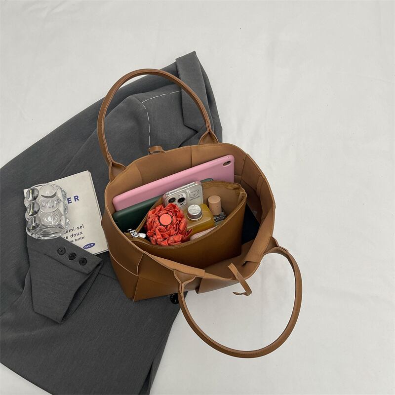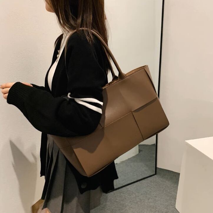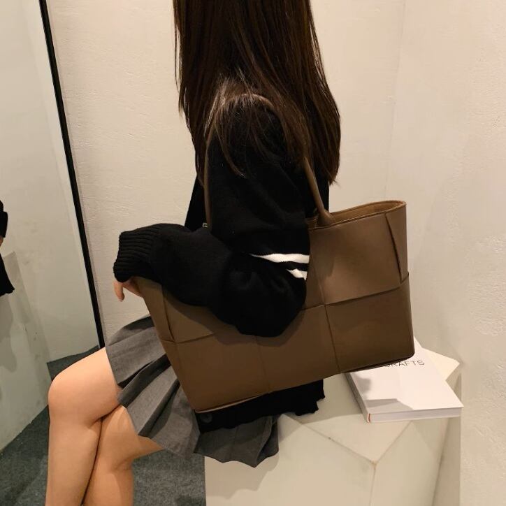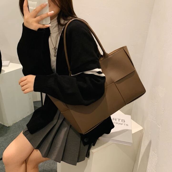 エコレザーウーブン ラージサイズ トートバッグ ダークブラウン BA00855
